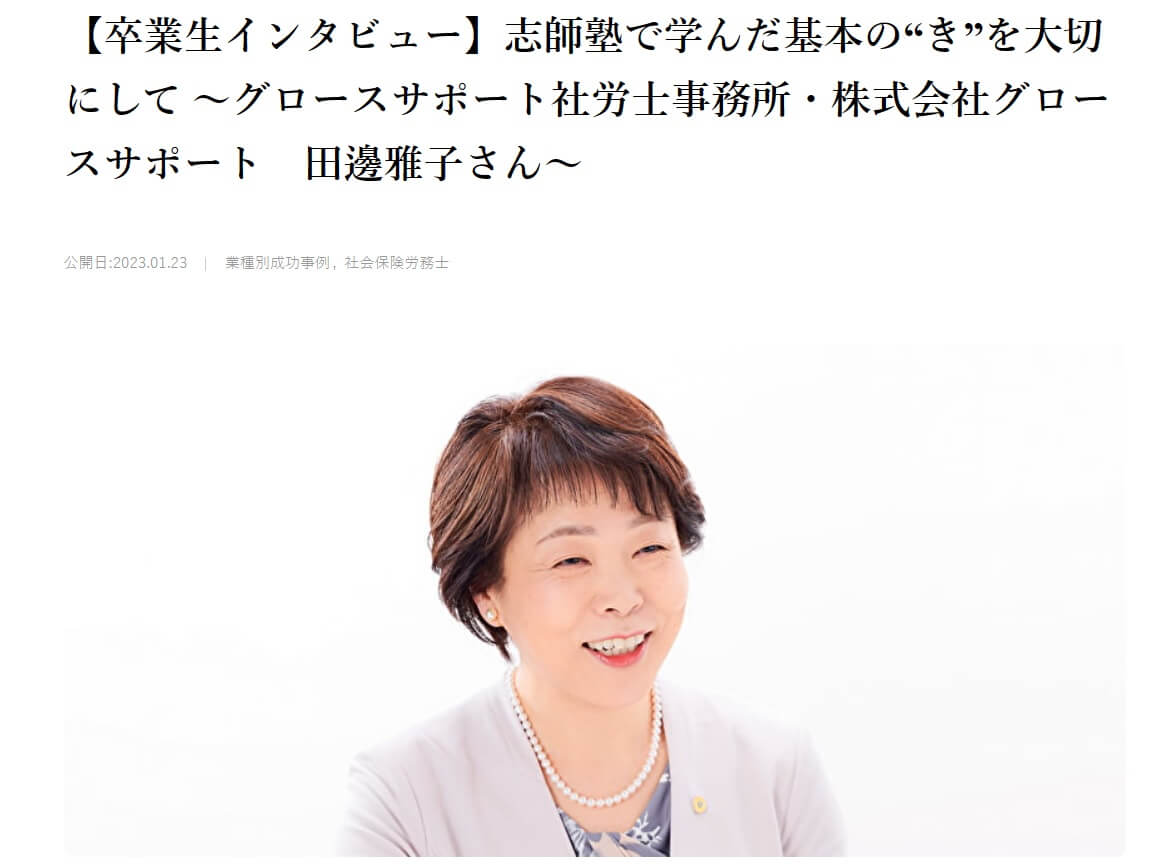 この度、株式会社エクスウィルパートナーズ様の志師塾ウェブサイトにて、志師塾卒業生である田邊雅子さんのインタビュー記事を執筆いたしました。