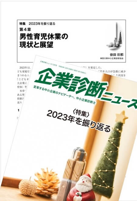このたび、中小企業診断協会の会報誌『企業診断ニュース』2023年12月号にて、特集「2023年を振り返る」の第4章「中小企業における男性育児休業の現状と展望」を執筆させていただきました。