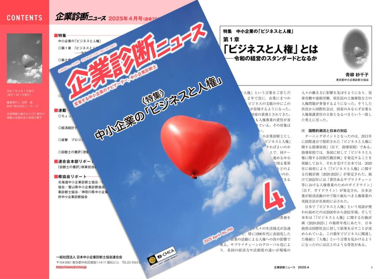 このたび、「企業診断ニュース」令和7年4月号特集「中小企業の『ビジネスと人権』」において、第1章「ビジネスと人権とは―令和の経営のスタンダードとなるか」及び、第5章「中小企業に求められる『人権』視点の経営」を執筆いたしました。