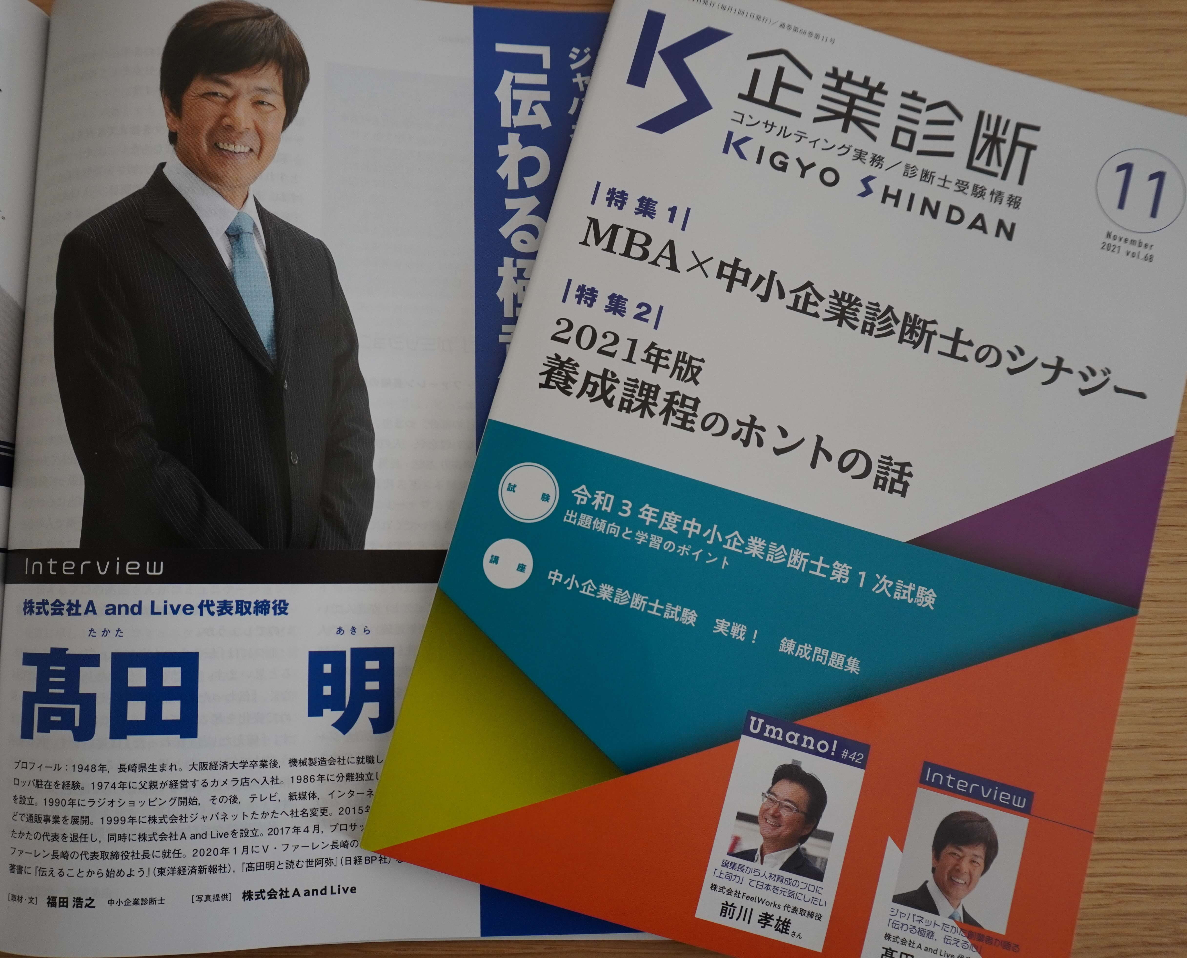 この度、月刊『企業診断』11月号にて、ジャパネットたかた創業者である髙田明さんを取材し、執筆致しました。
