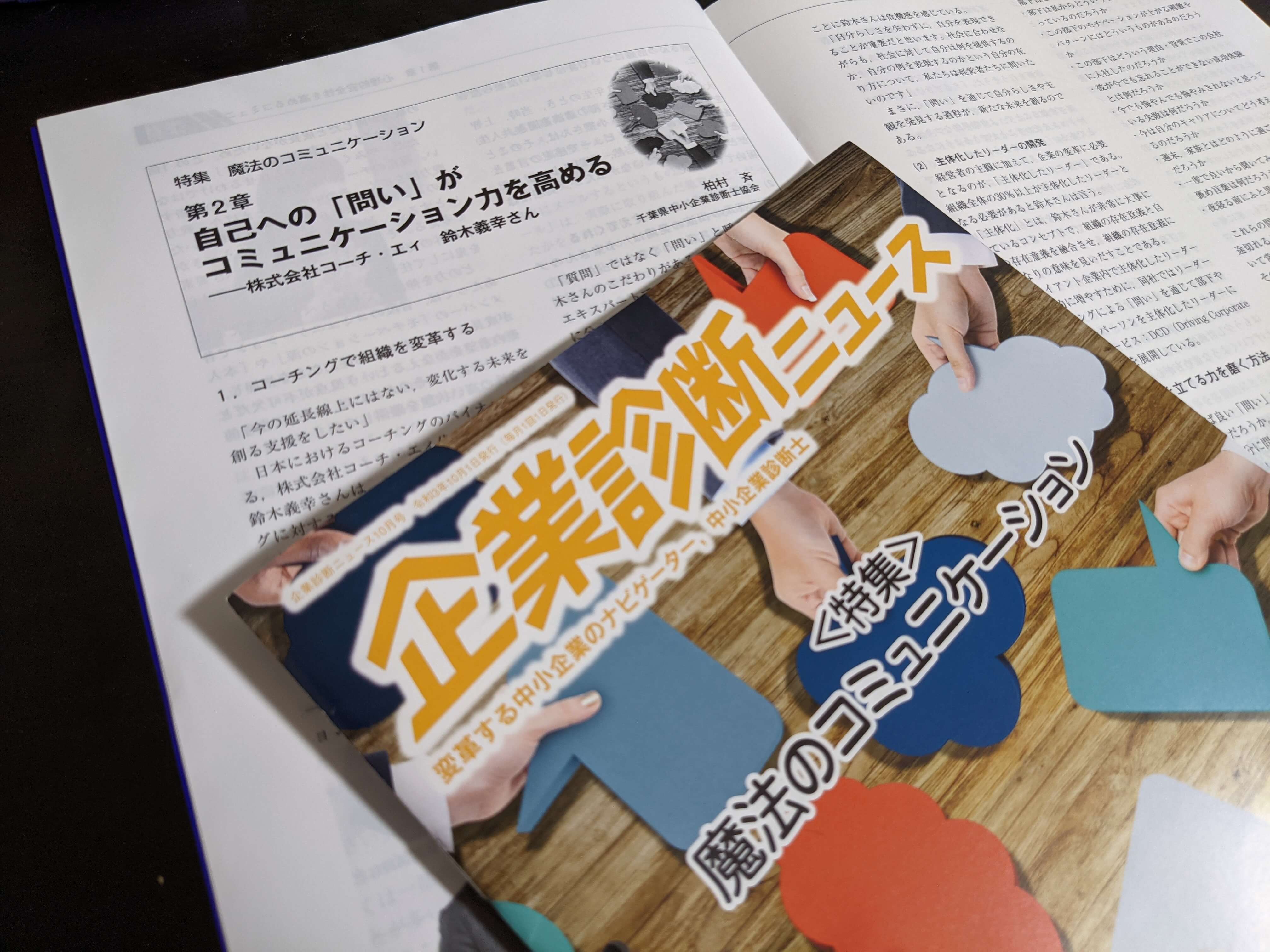 この度、企業診断ニュース10月号に「魔法のコミュニケーション」第2章として日本におけるコーチングのパイオニアである株式会社コーチ・エィの鈴木社長にインタビューさせていただきました。