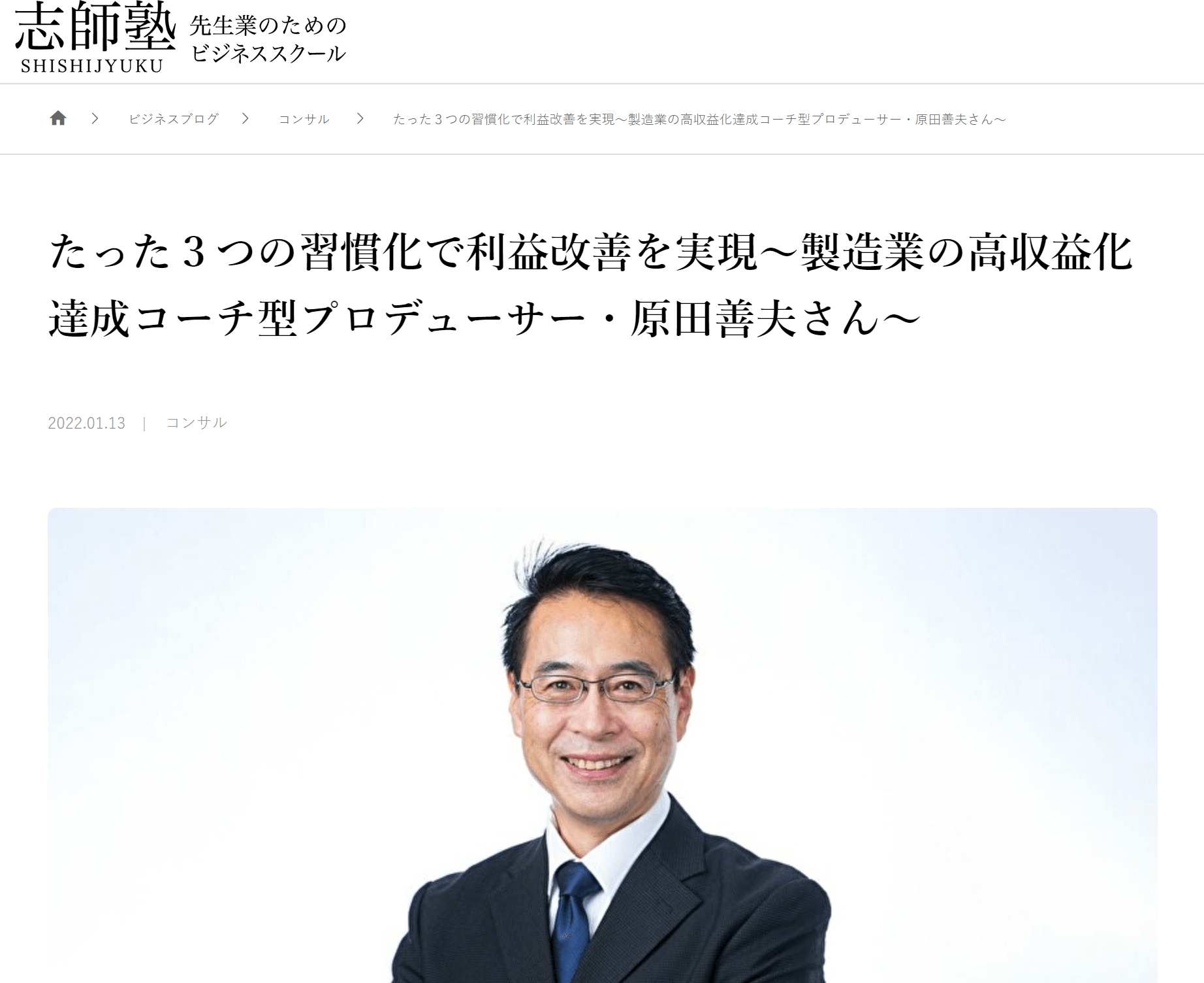 株式会社エクスウィルパートナーズ様の「先生ビジネス百科」にて、志師塾卒業生である原田善夫さんを取材、執筆させていただきました。