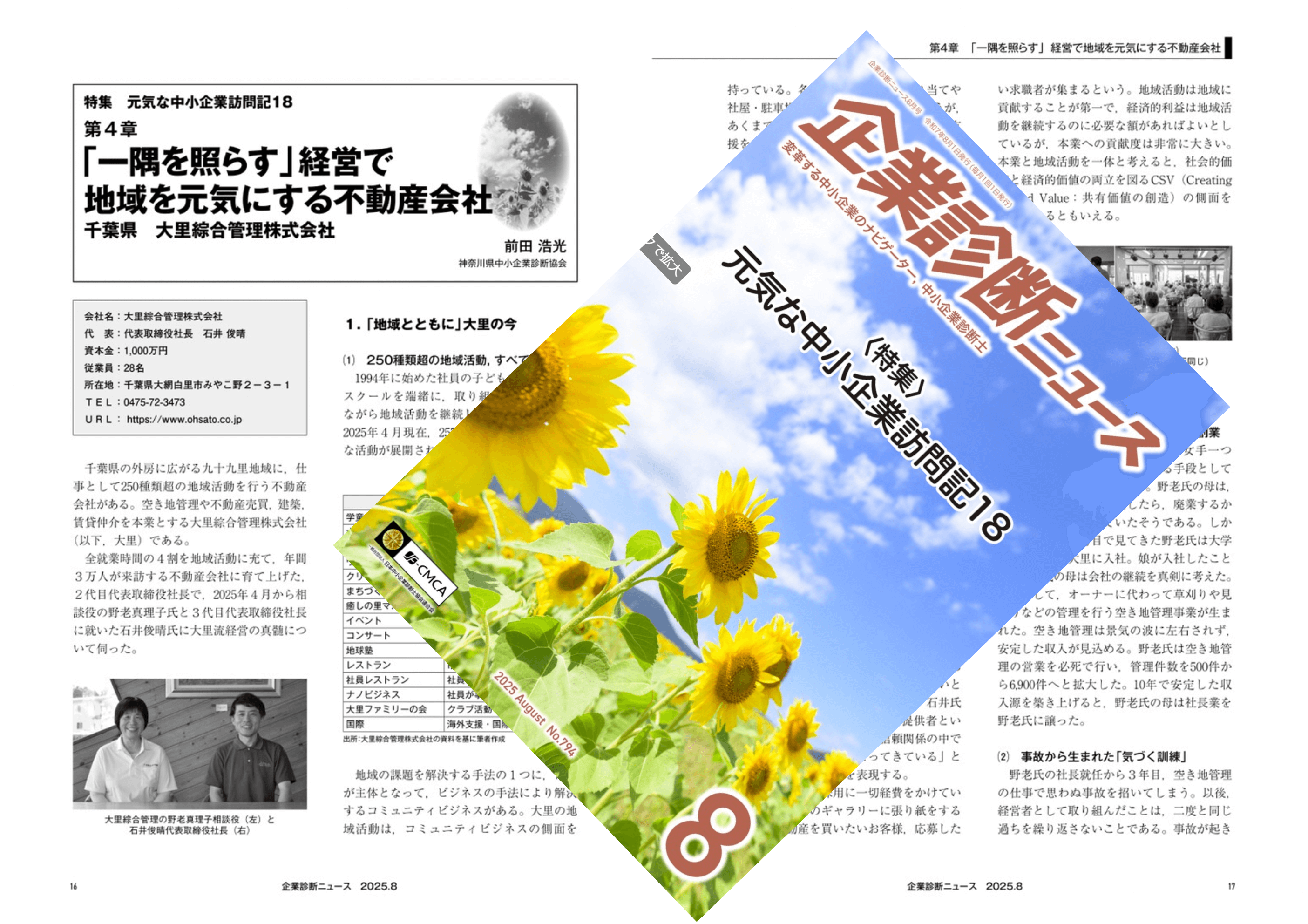 このたび、日本中小企業診断士協会連合会の会報誌『企業診断ニュース』2025年8月号にて、特集「元気な中小企業訪問記18」の第4章「『一隅を照らす』経営で地域を元気にする不動産会社」を執筆させていただきました。