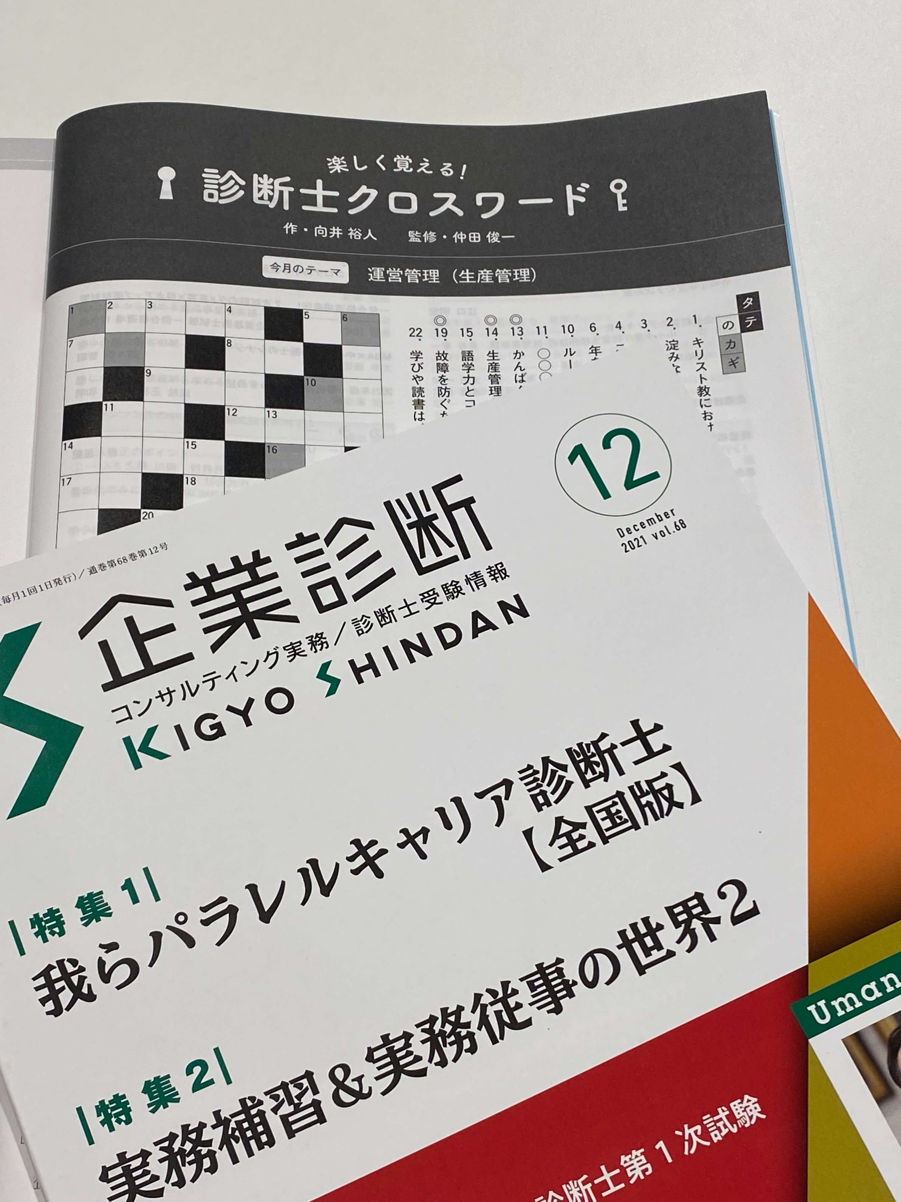 「企業診断」12月号で「楽しく覚える!診断士用語クロスワード」を作成させていただきました。