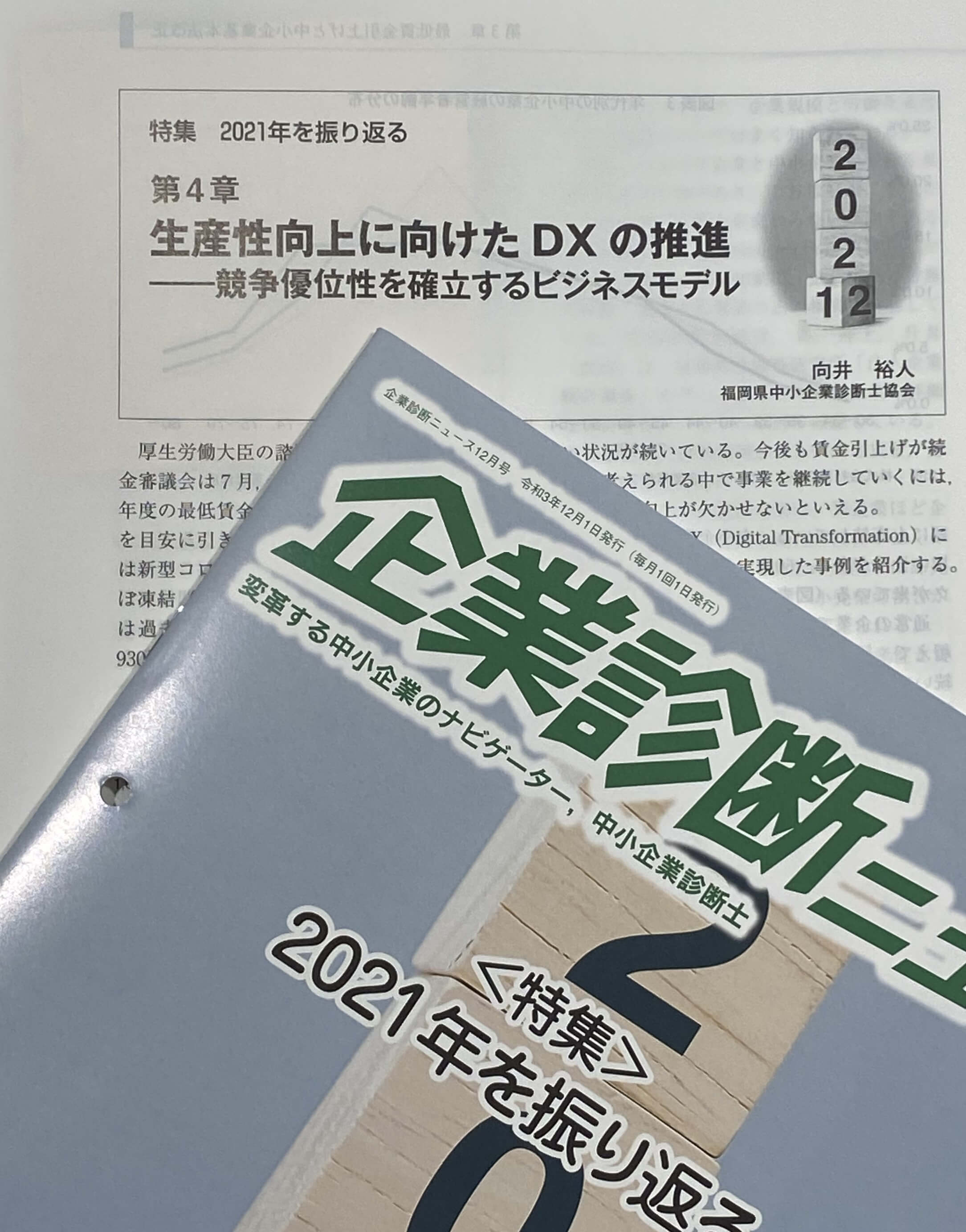 企業診断ニュース2021年12月号の特集記事「2021年を振り返る」の第4章「生産性向上に向けたDXの推進」を執筆させていただきました。