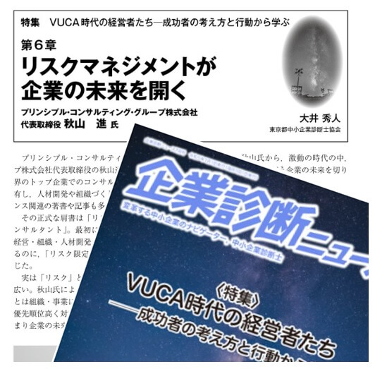 このたび、中小企業診断協会の会報誌『企業診断ニュース2023年7月号』にて、特集「VUCA時代の経営者たちー成功者の考え方と行動から学ぶ」の第6章「リスクマネジメントが企業の未来を開く」を執筆いたしました。