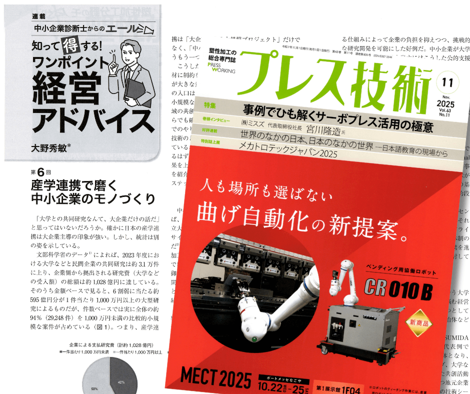 この度、日刊工業新聞社の月刊誌「プレス技術」2025年11月号「知って得する!ワンポイント経営アドバイス~中小企業診断士からのエール~」の第6回を担当させていただきました。