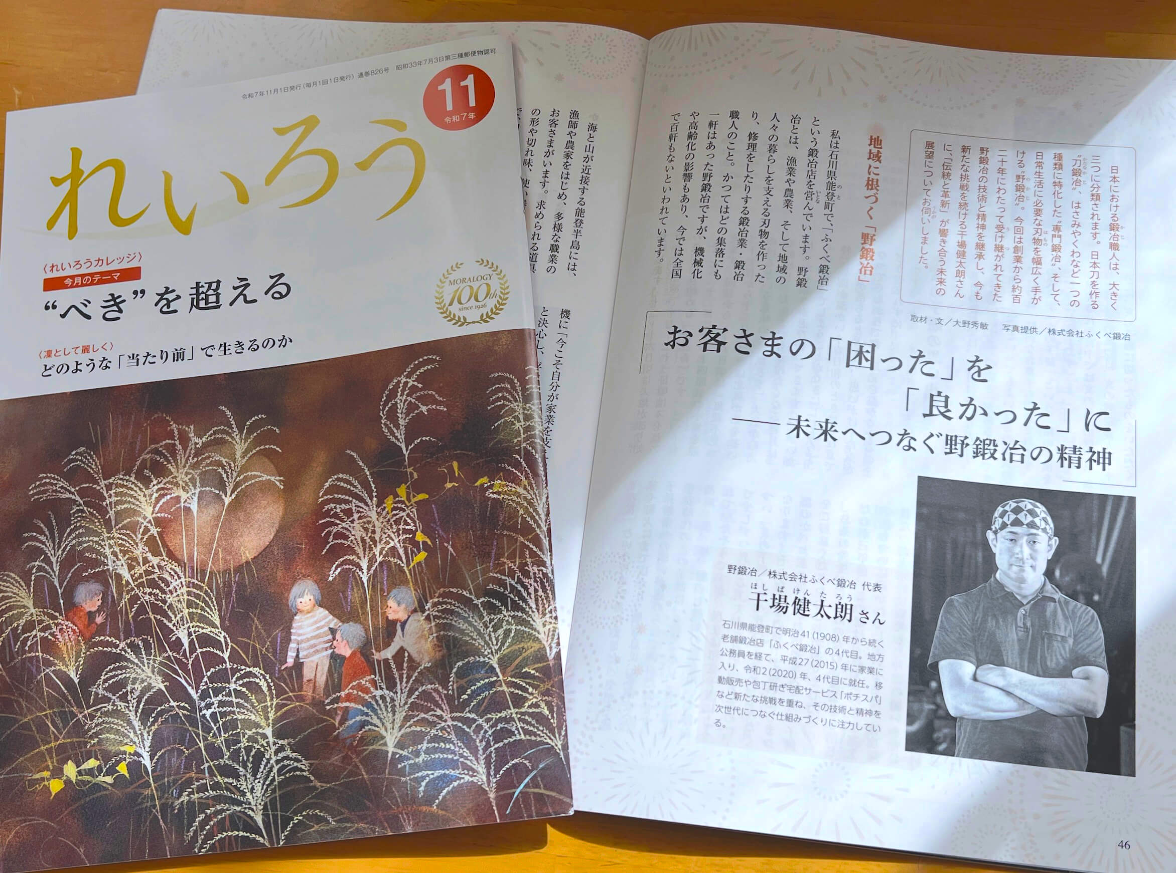 このたび、雑誌『れいろう』令和7年11月号「一隅を照らす」にて、『お客様の「困った」を「よかった」に ― 未来へつなぐ野鍛冶の精神』を執筆いたしました。