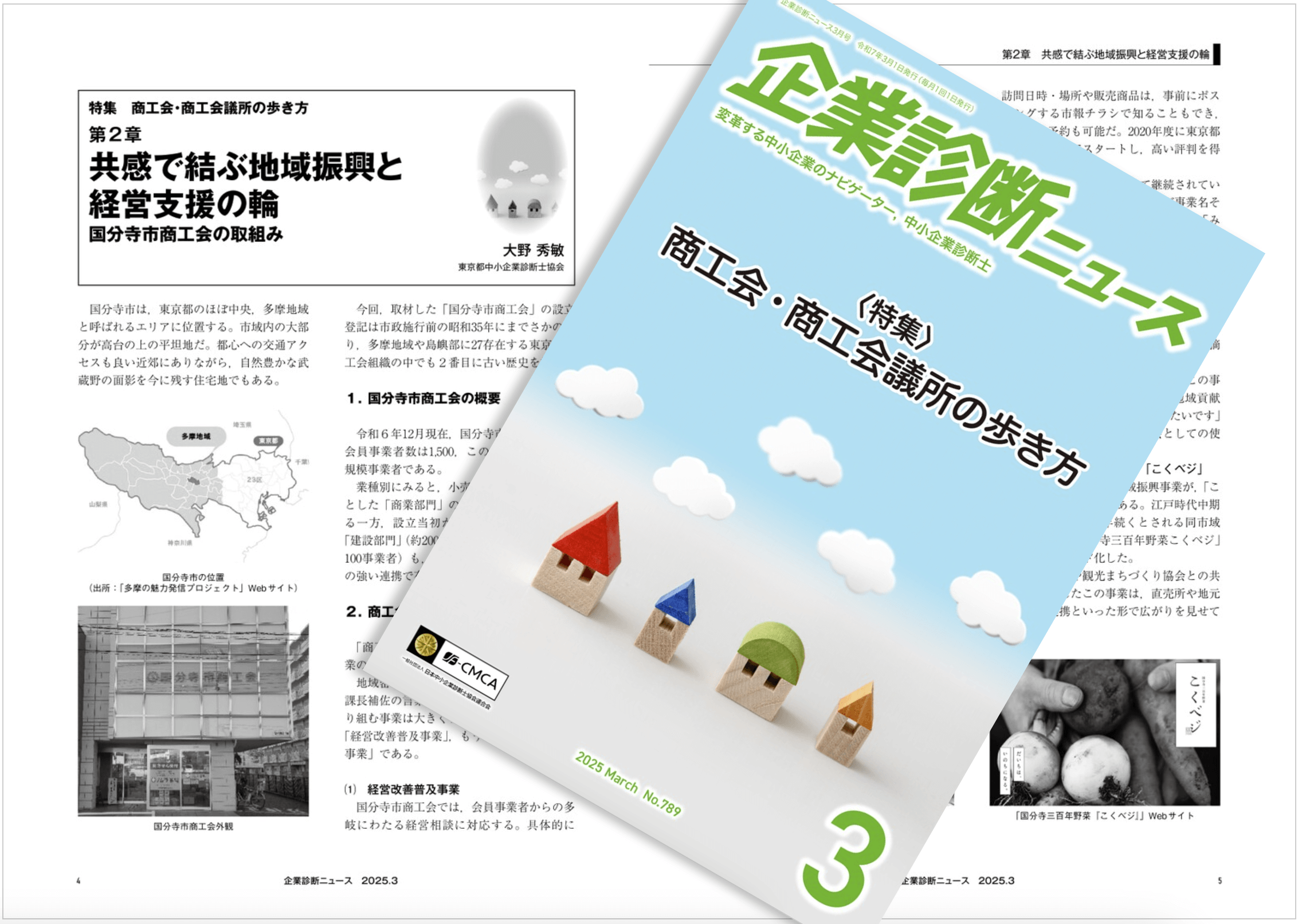 この度、企業診断ニュース2025年3月号の特集「商工会・商工会議所の歩き方」において、2章の執筆を担当させていただきました。