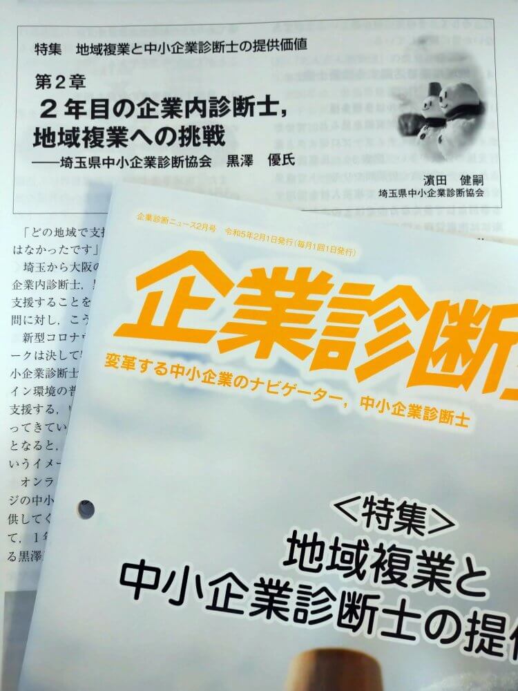 このたび、中小企業診断協会の会報誌『企業診断ニュース』2023年2月号にて、特集「地域複業と中小企業診断士の提供価値」の第2章「2年目の企業内診断士,地域複業への挑戦」で、黒澤優さんの取材記事を執筆させていただきました。