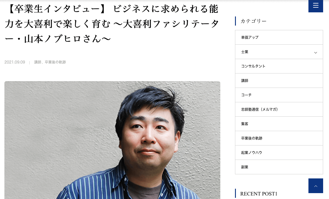 このたび、株式会社エクスウィルパートナーズ様の志師塾ウェブサイトにて、志師塾卒業生である山本ノブヒロ様のインタビュー記事執筆させていただきました。