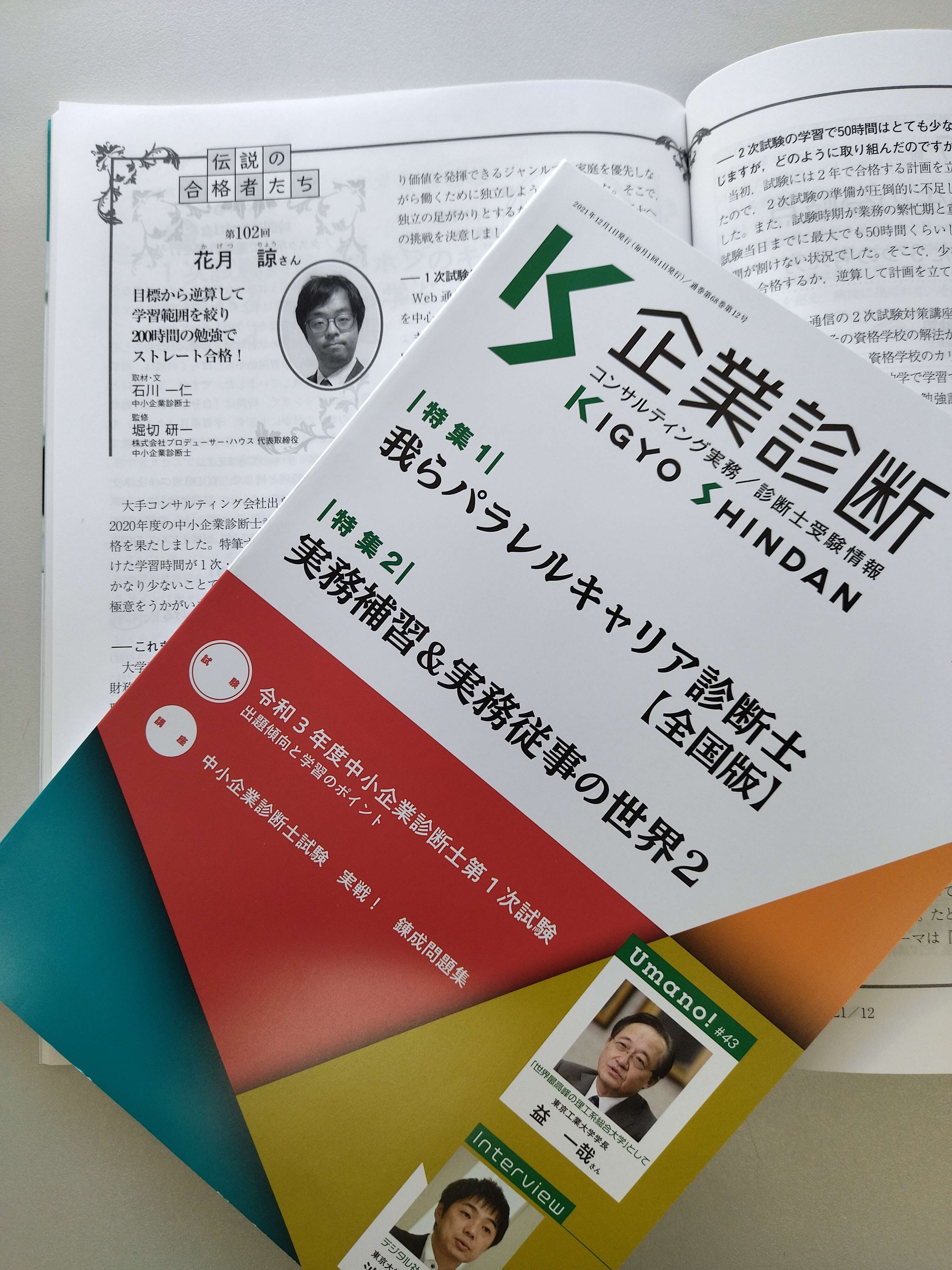 この度、月刊企業診断2021年12月号において連載「伝説の合格者たち」の執筆を担当し、2020年の中小企業診断士試験に合格した花月諒(かげつりょう)さんを取材させていただきました。