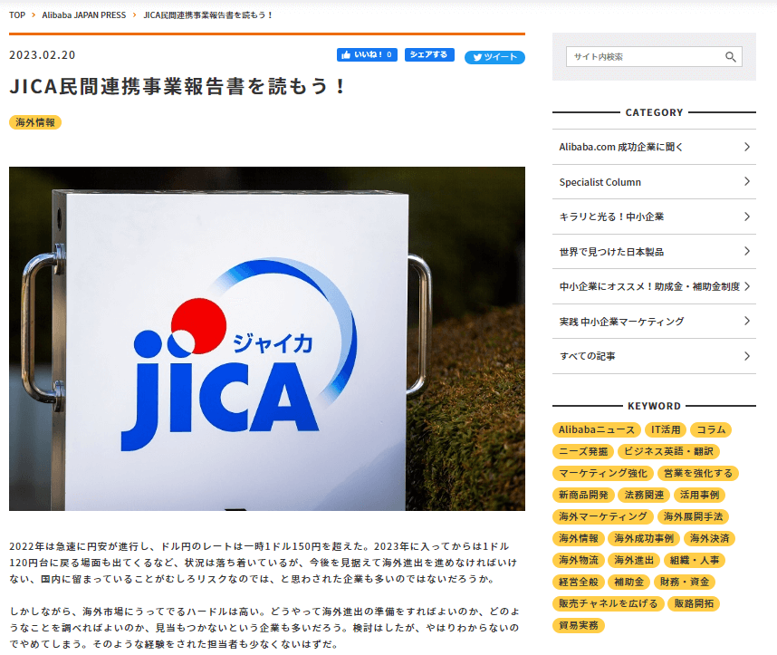 この度、「アリババジャパンプレス」にて、「JICA民間連携事業報告書を読もう!」という記事を執筆させていただきました。