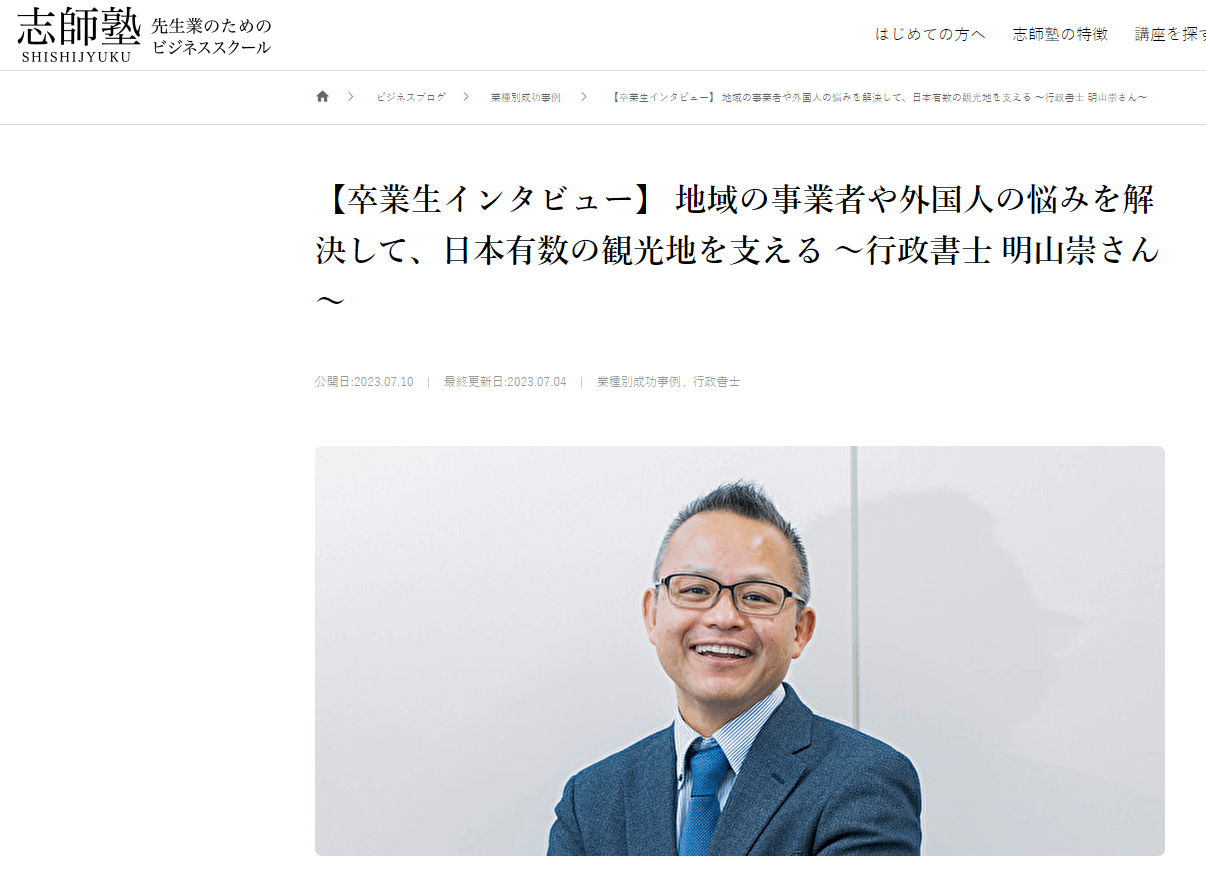 このたび、株式会社エクスウィルパートナーズ様の志師塾ウェブサイトにて、志師塾卒業生である明山崇さんのインタビュー記事を執筆いたしました。