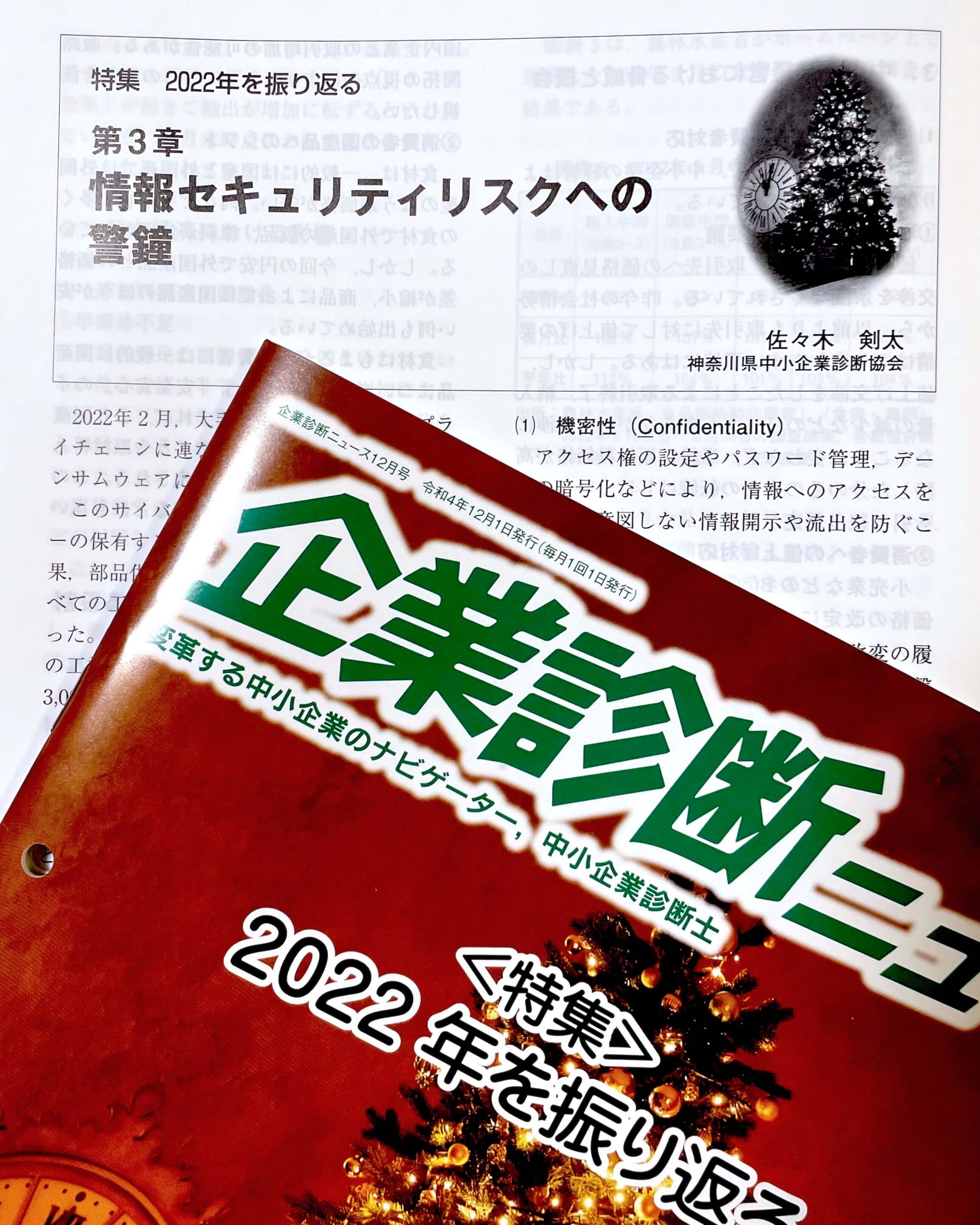 このたび、中小企業診断協会の会報誌『企業診断ニュース』2022年12月号にて、特集「2022年を振り返る」の第3章「情報セキュリティリスクへの警鐘」を執筆いたしました。