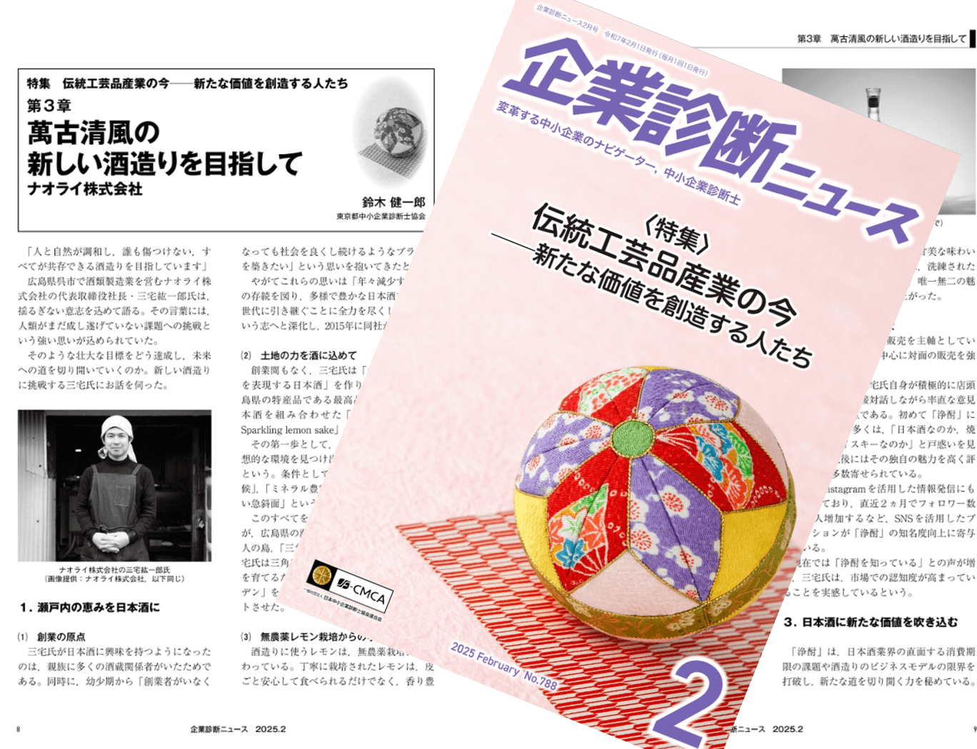 この度、企業診断ニュース2025年2月号の特集「伝統工芸品産業の今 新たな価値を創造する人たち」において、第3章の執筆を担当させていただきました。
