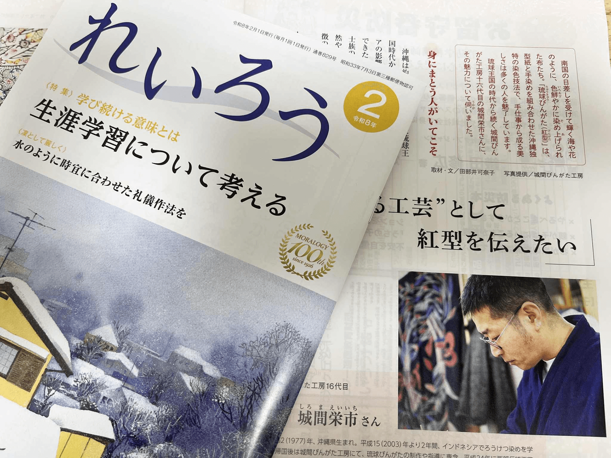 このたび、雑誌『れいろう』令和8年2月号「一隅を照らす」において「“生きている工芸”として紅型を伝えたい」を執筆いたしました。