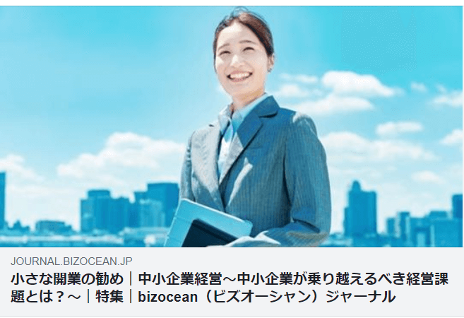 このたび、ビズオーシャン(bizocean)サイトにて「小さな開業の勧め」を執筆させていただきました。