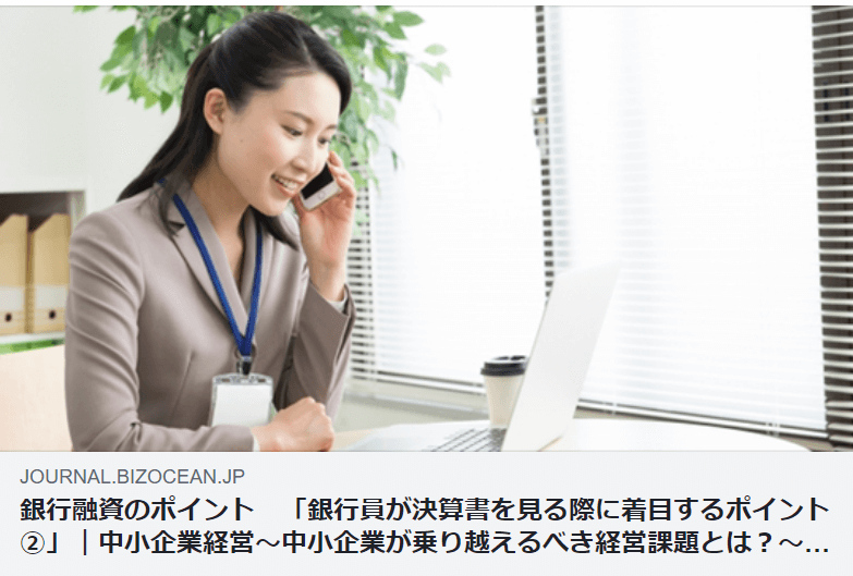 このたび、ビズオーシャン(bizocean)サイトにて、「銀行融資のポイント 銀行員が決算書を見る際に着目するポイント②」を執筆させていただきました。