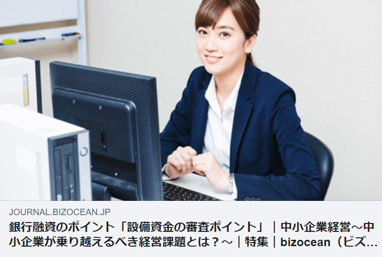 このたび、ビズオーシャン(bizocean)サイトにて、「銀行融資のポイント 設備資金の審査ポイント」を執筆させていただきました。