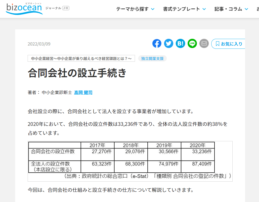 このたび、ビズオーシャン(bizocean)サイトにて「合同会社の設立手続き」を執筆させていただきました。
