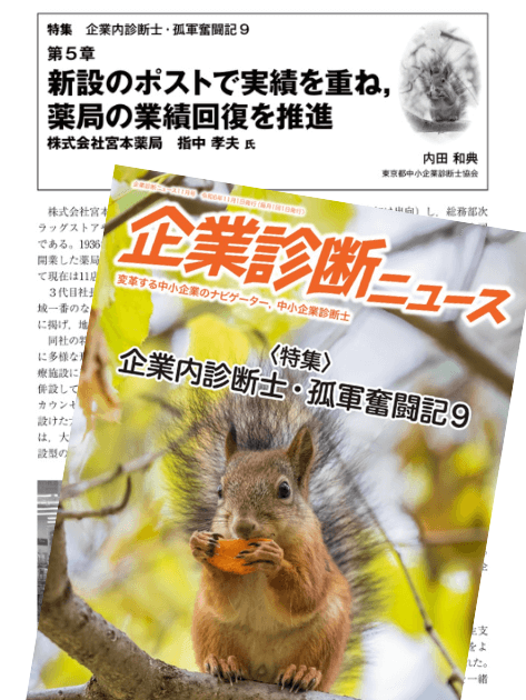 このたび、日本中小企業診断士協会連合会の会報誌『企業診断ニュース』2024年11月号にて、特集「企業診断士・孤軍奮闘記9」の第5章「新設のポストで実績を重ね,薬局の業績回復を推進」を執筆させていただきました。