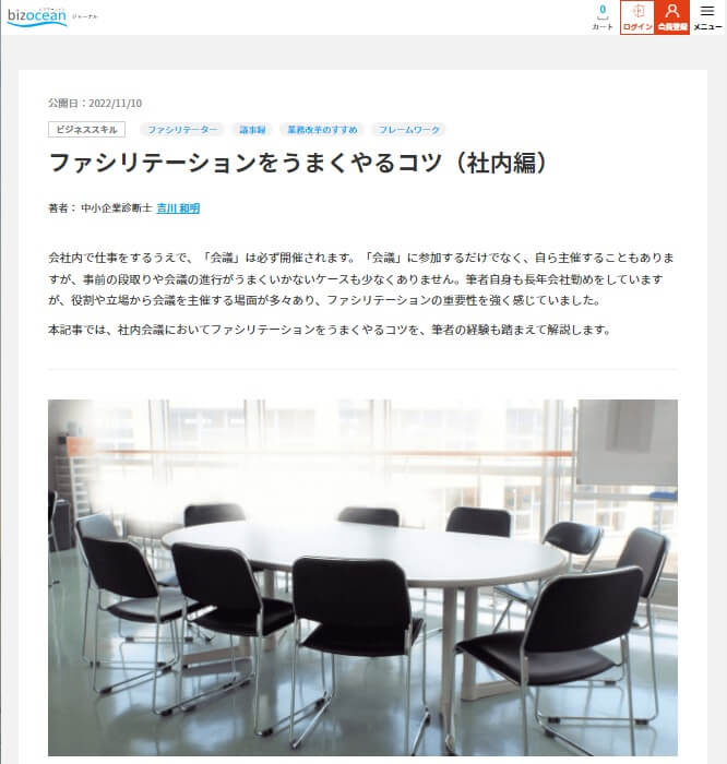このたび、ビズオーシャン様のサイトにて「ファシリテーションをうまくやるコツ(社内編)」を執筆させていただきました。