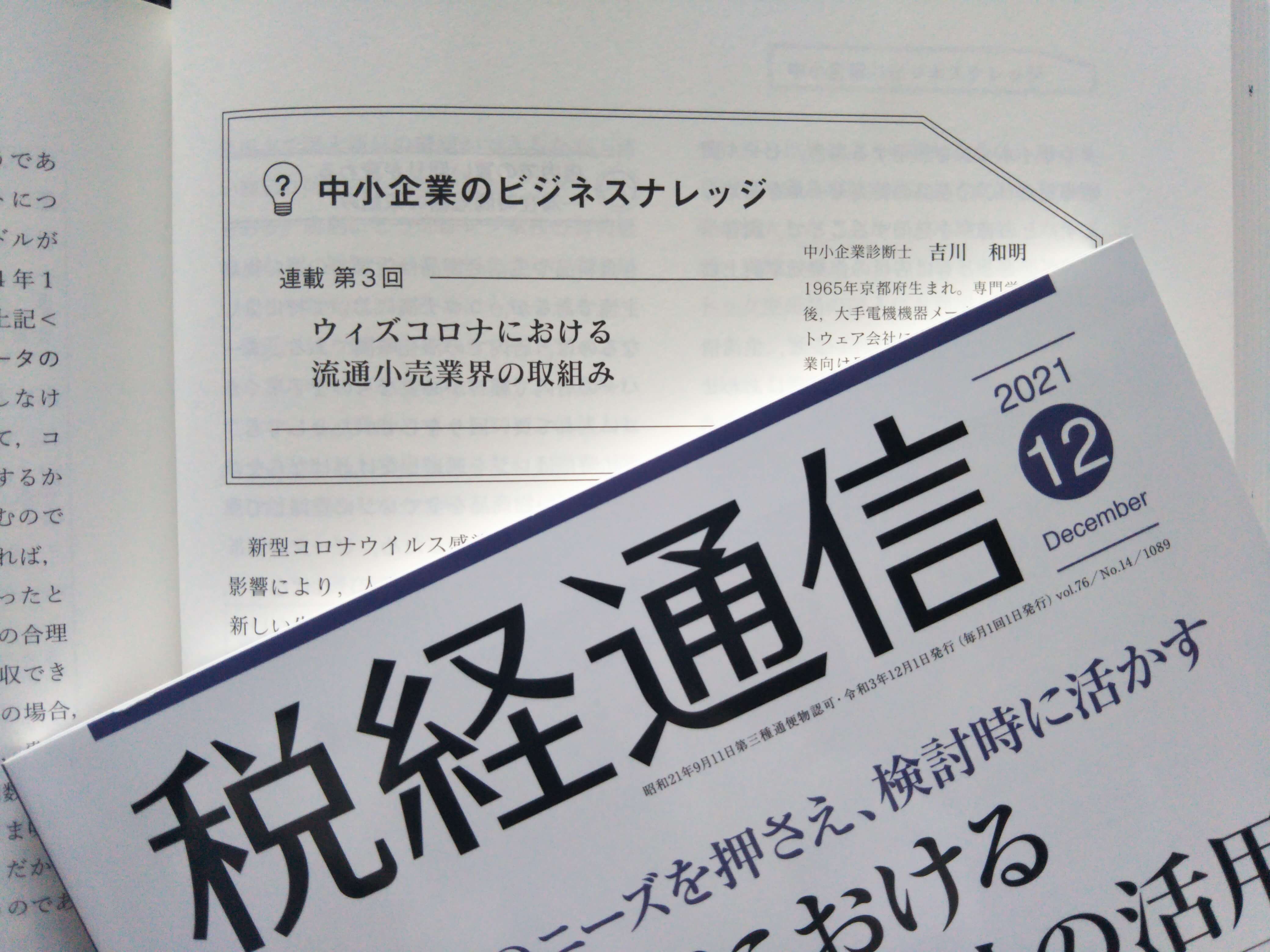 この度、税経通信12月号の連載企画「中小企業のビジネスナレッジ」において、「ウィズコロナにおける流通小売業界の取組み」について寄稿しました。