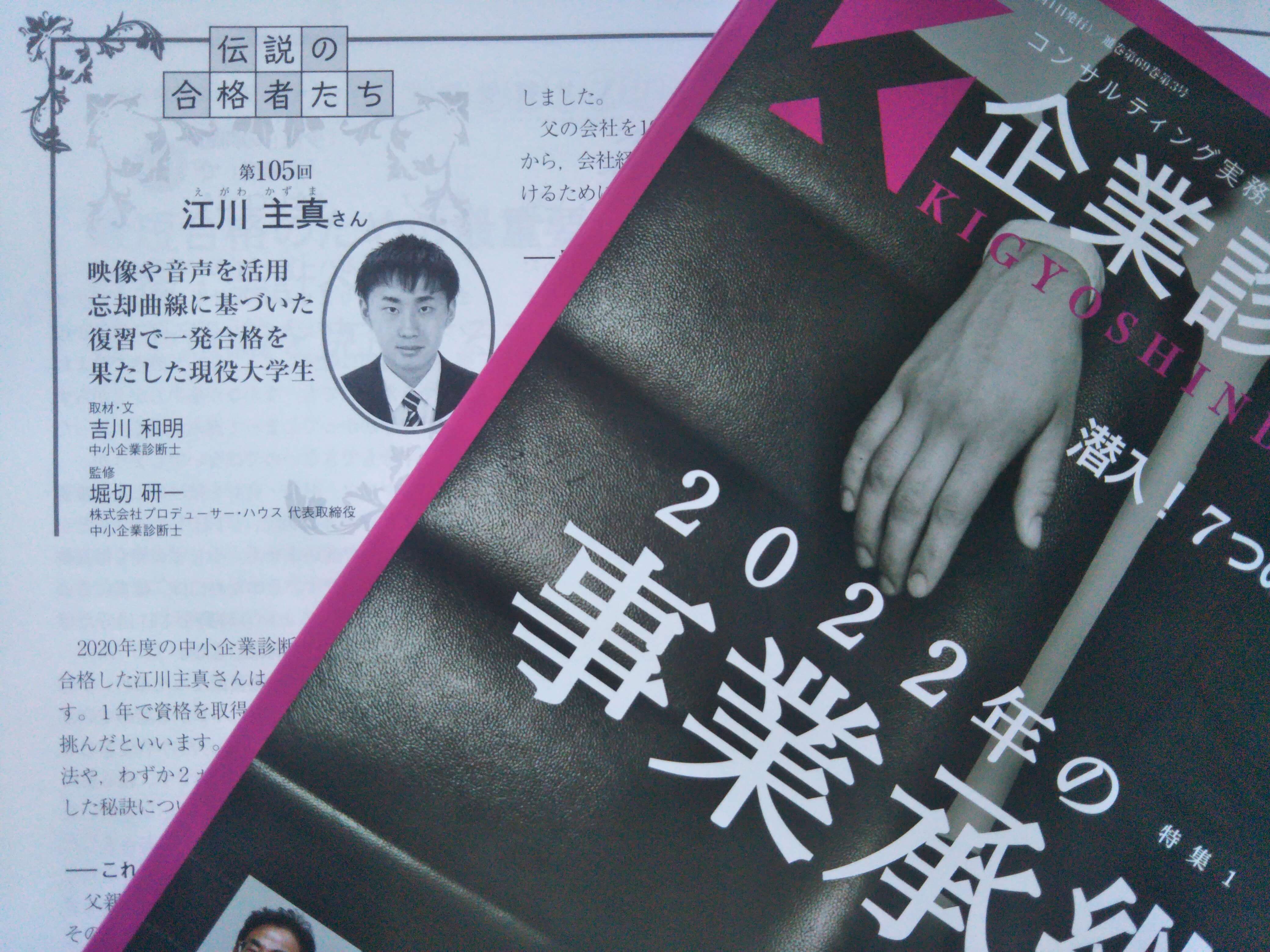 このたび、同友館発行『企業診断』2022年3月号において、連載「伝説の合格者たち」の執筆を担当させていただきました。