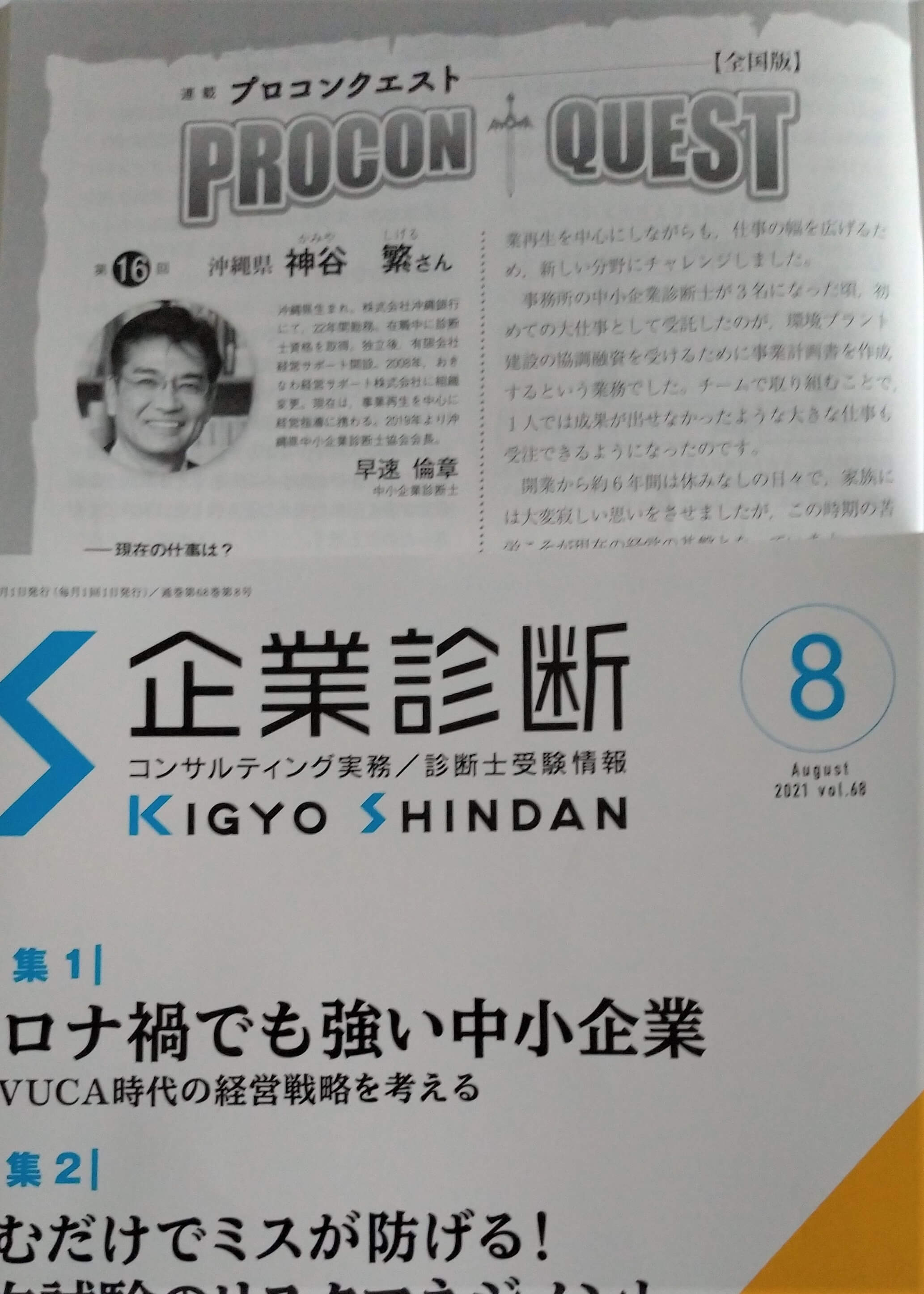 この度月刊企業診断8月号において、「プロコンクエスト【全国版】」の執筆を担当いたしました。
