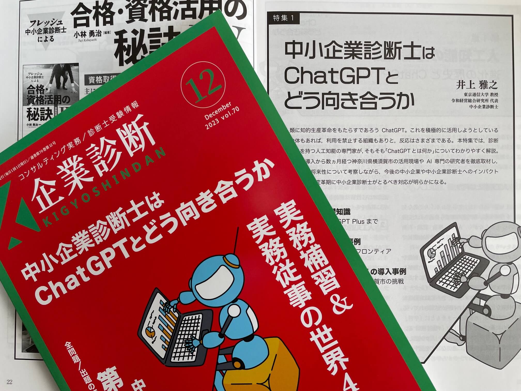 この度、同友館発行『企業診断』2023年12月号の特集「中小企業診断士はChatGPTとどう向き合うか」の執筆を担当させていただきました。