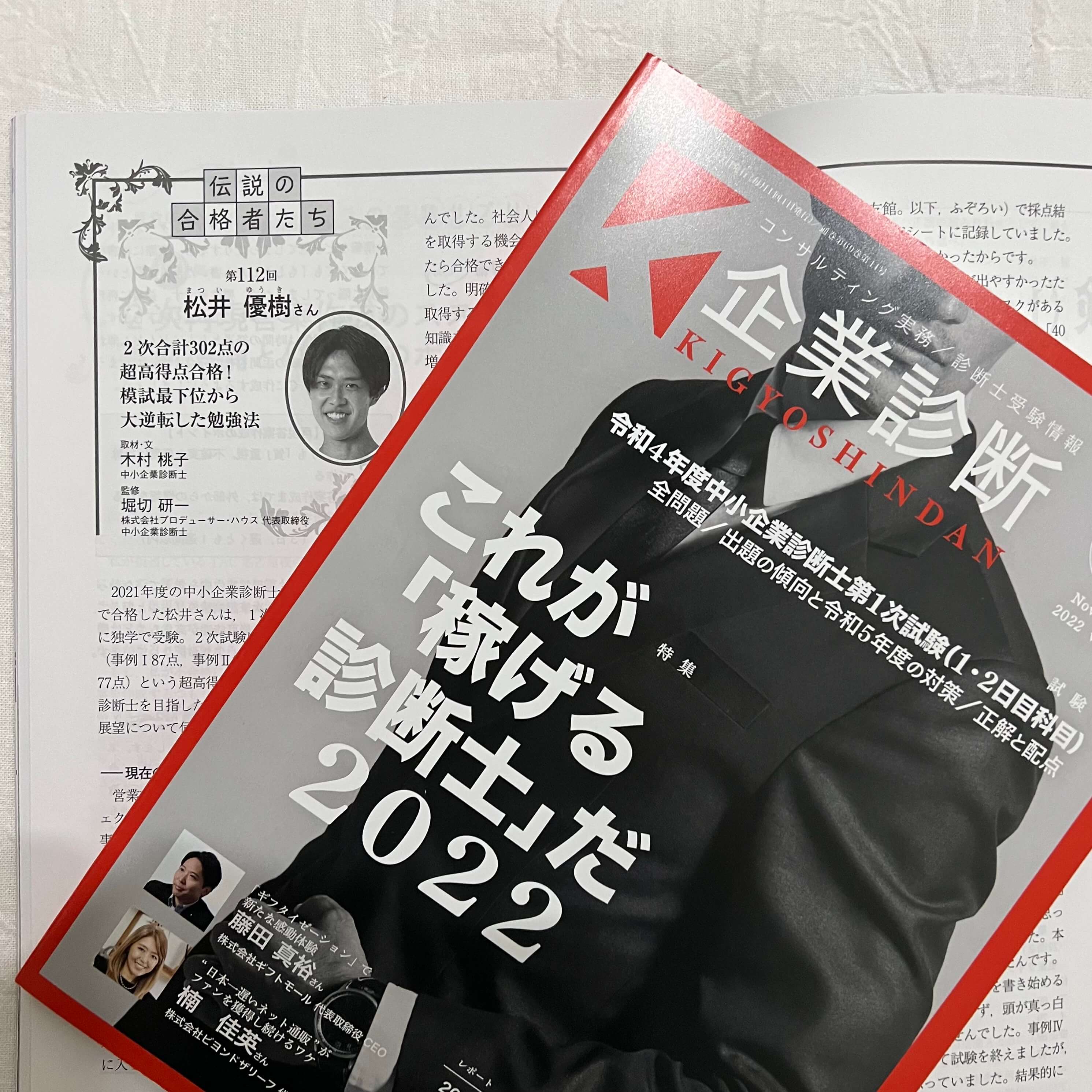 このたび、『企業診断』11 月号において連載「伝説の合格者たち」を執筆いたしました。
