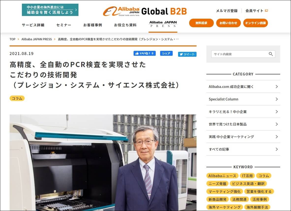 この度、「高精度、全自動のPCR検査を実現させたこだわりの技術開発」と題する取材記事を執筆し、WEBサイト「アリババジャパンプレス」に掲載されました。