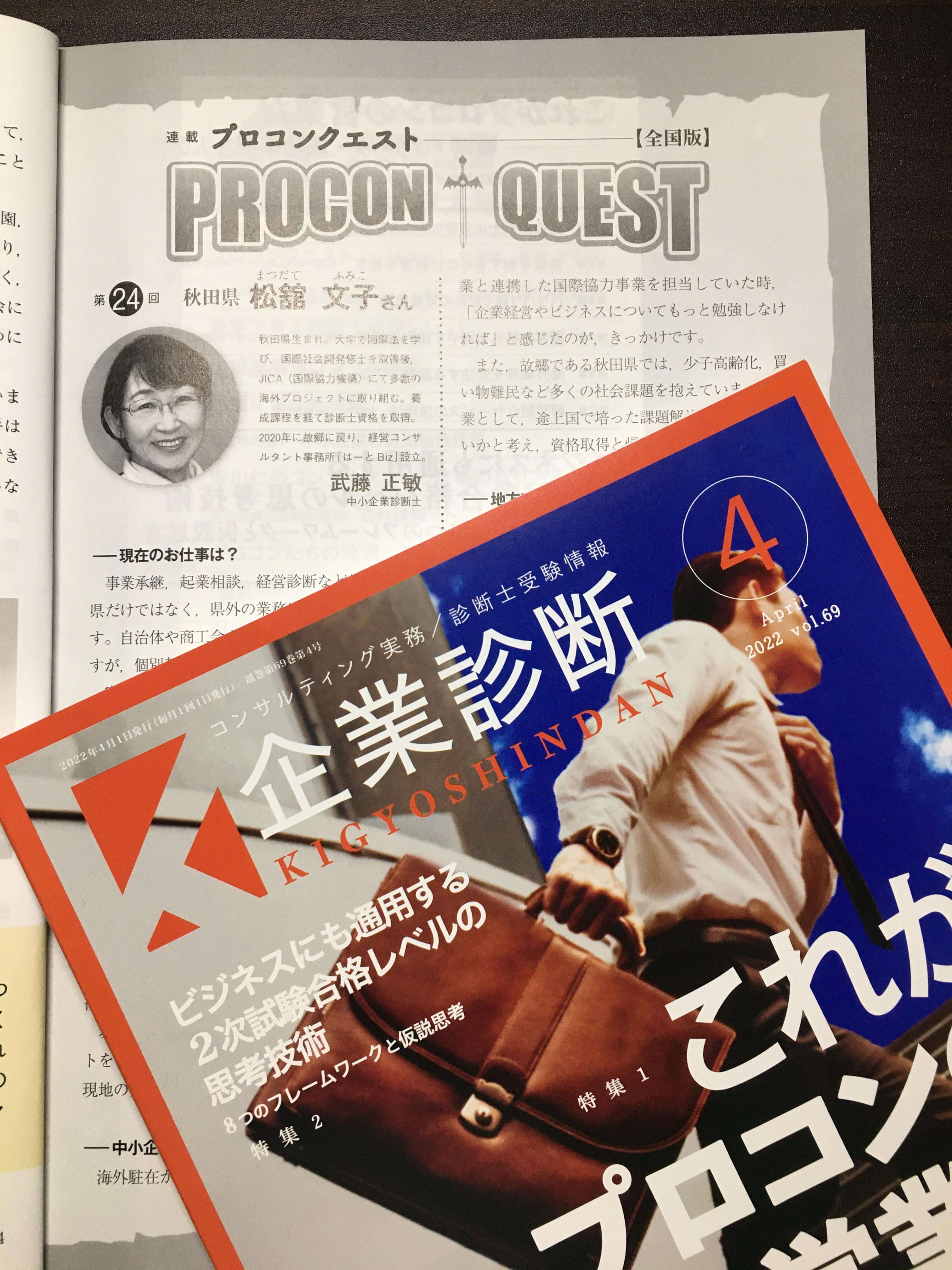 この度、月刊「企業診断」4月号にて、連載『プロコンクエスト』企画を執筆させて頂きました。