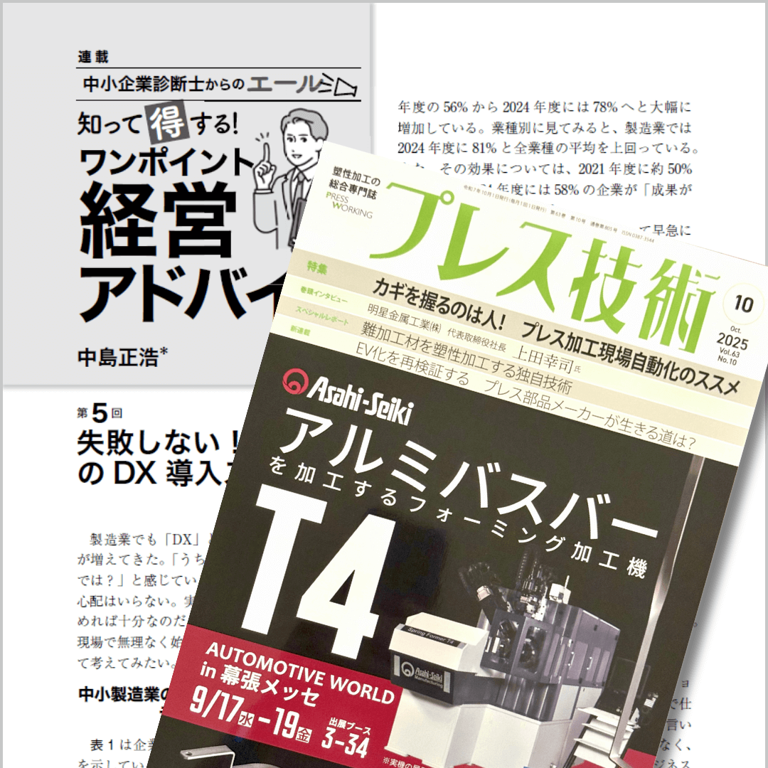 この度、日刊工業新聞社の月刊誌「プレス技術」2025年10月号、「知って得する!ワンポイント経営アドバイス~中小企業診断士からのエール~」の第5回を担当させていただきました。