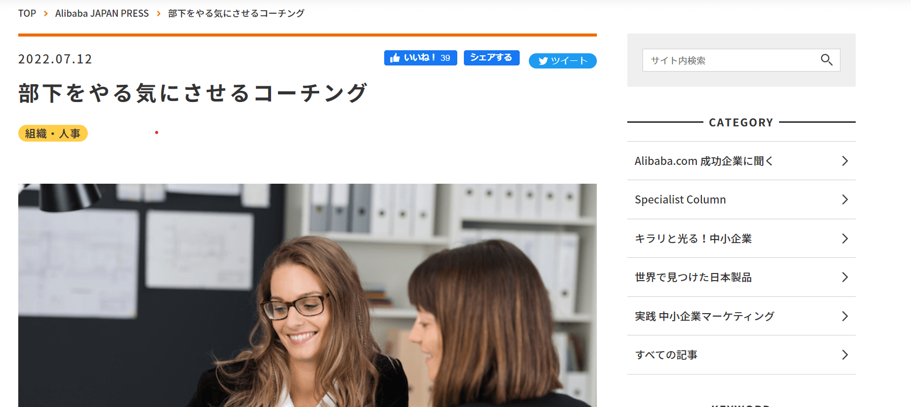 このたび、当職が起案した「部下をやる気にさせるコーチング」がアリババジャパンプレスのウェブサイトに登載されました。