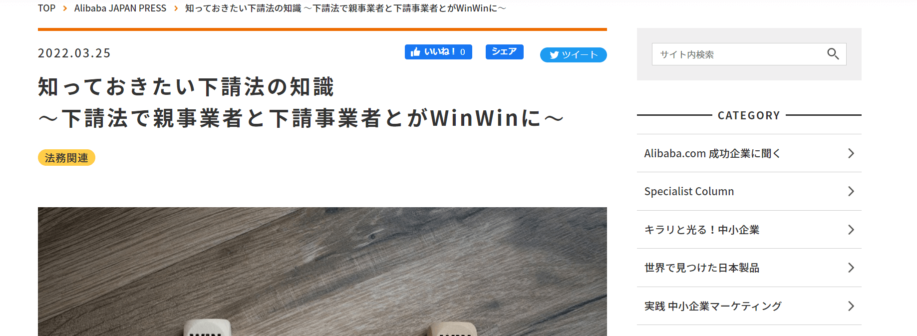 このたび、当職が起案した「知っておきたい下請法の知識~下請法で親事業者と下請事業者とがWinWinに~」がアリババジャパンプレスのウェブサイトに登載されました。