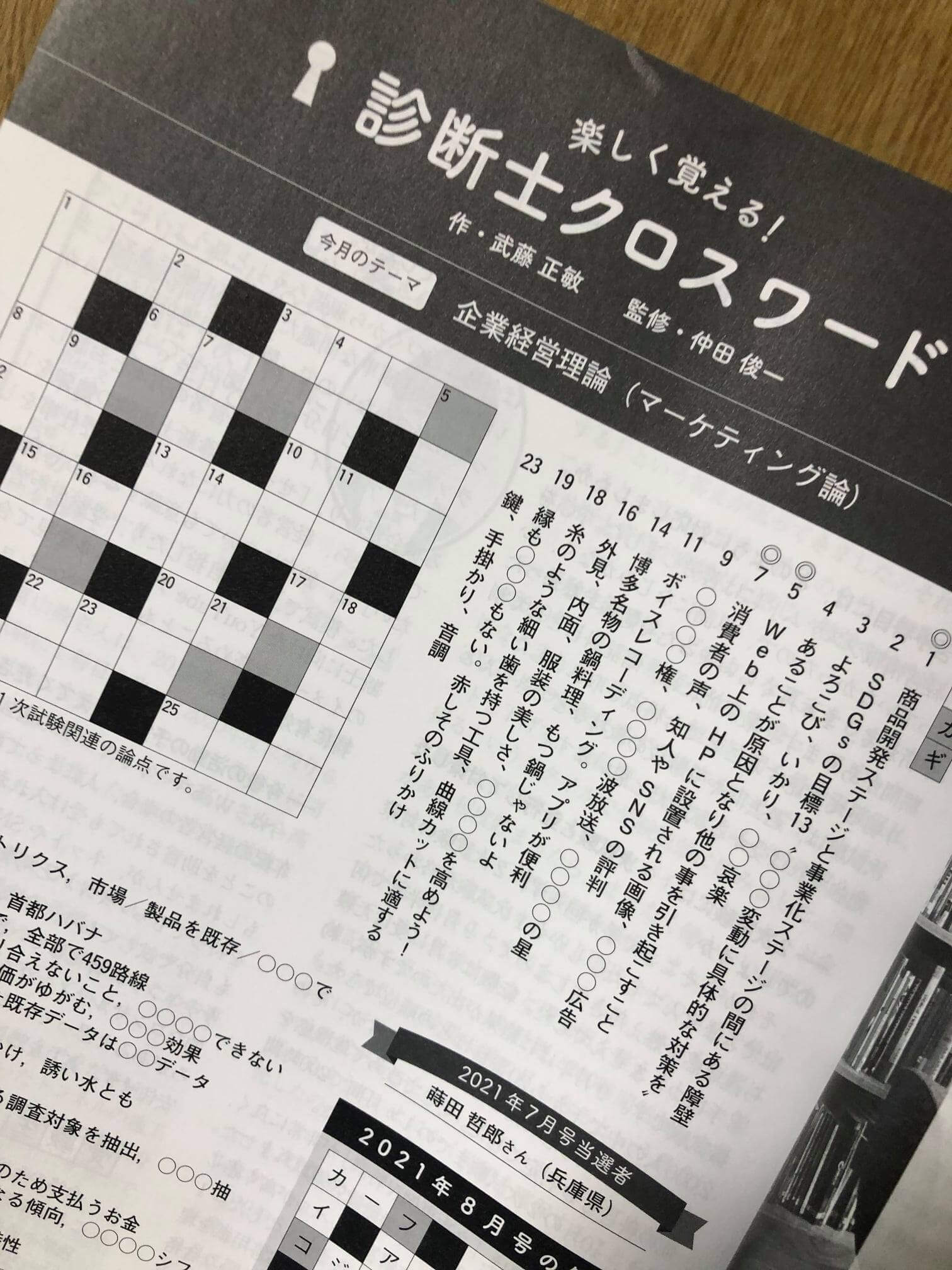 「企業診断」9月号で「楽しく覚える!診断士用語クロスワード」を作成させていただきました。