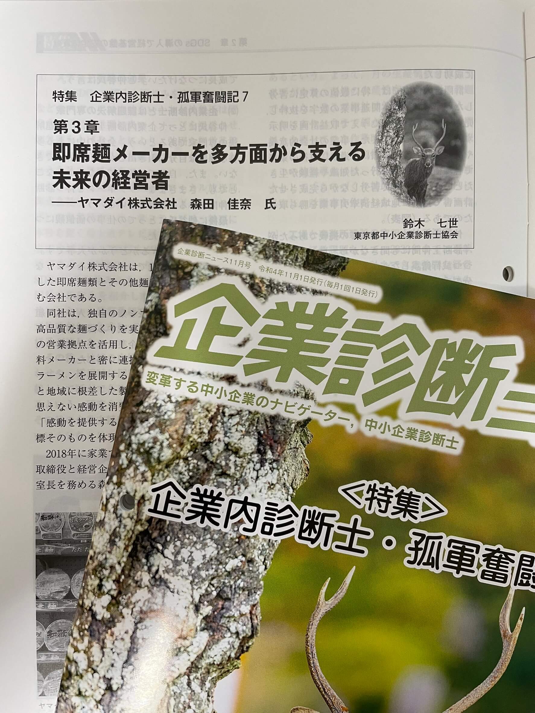 このたび「企業診断ニュース」2022年11月号の特集記事「企業内診断士・孤軍奮闘記7」の第3章「即席麺メーカーを多方面から支える未来の経営者」を執筆させていただきました。