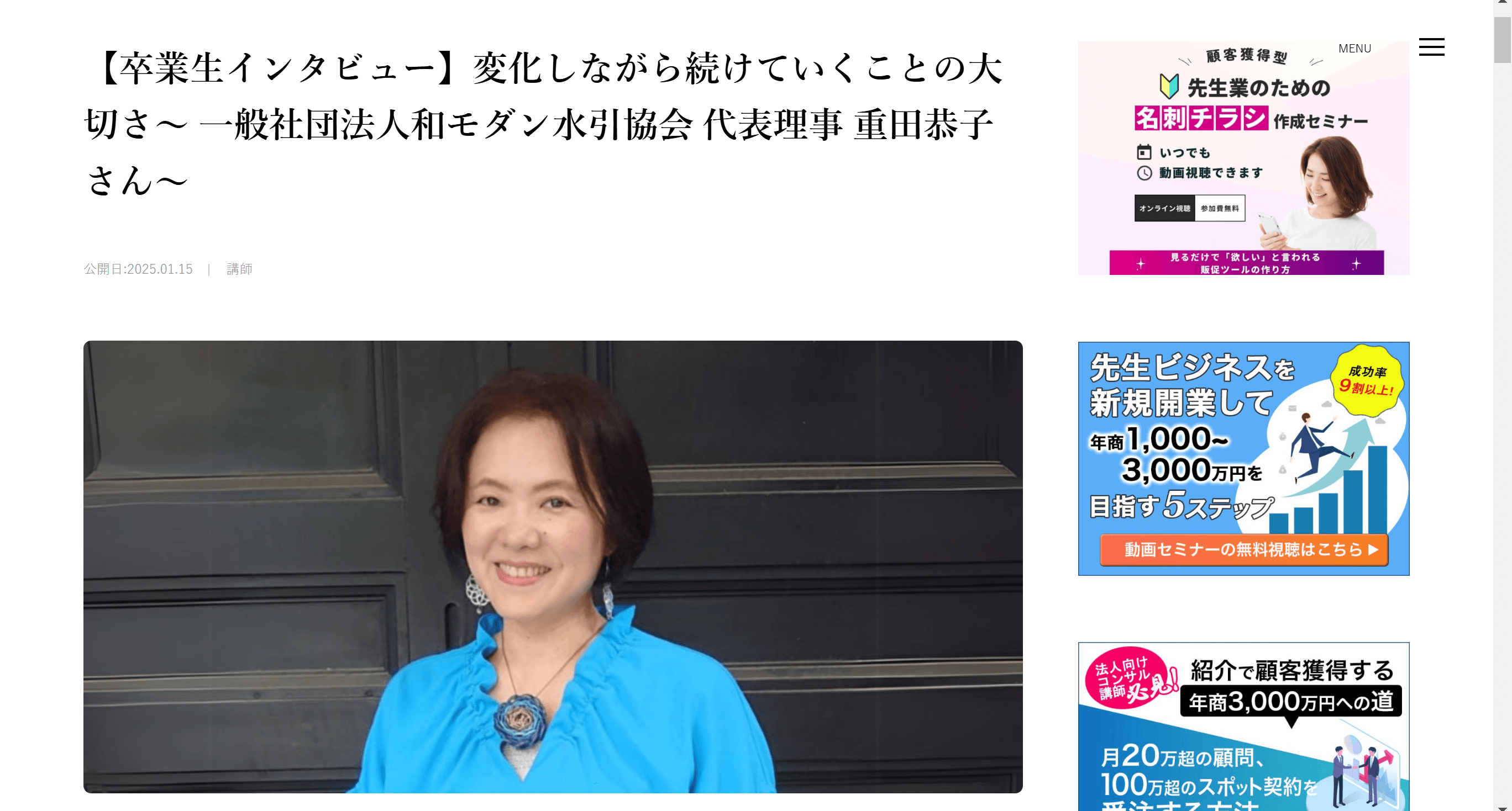 株式会社エクスウィルパートナーズ様の「先生ビジネス百科」にて、「志師塾」卒業生の重田恭子(おもだきょうこ)さんのインタビュー記事を執筆いたしました。