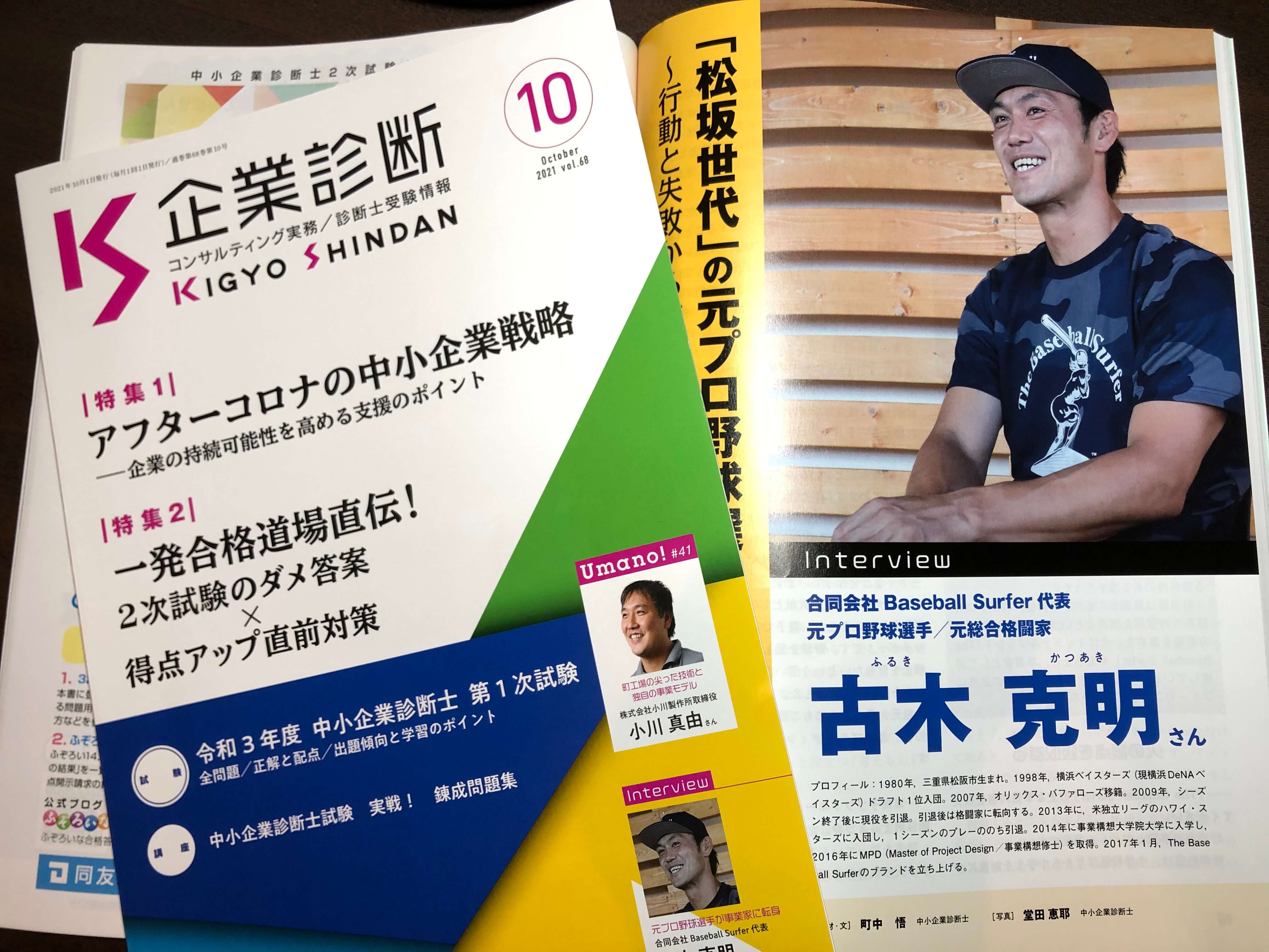 月刊『企業診断』10月号にて、元プロ野球選手の古木克明さんを取材執筆をいたしました。