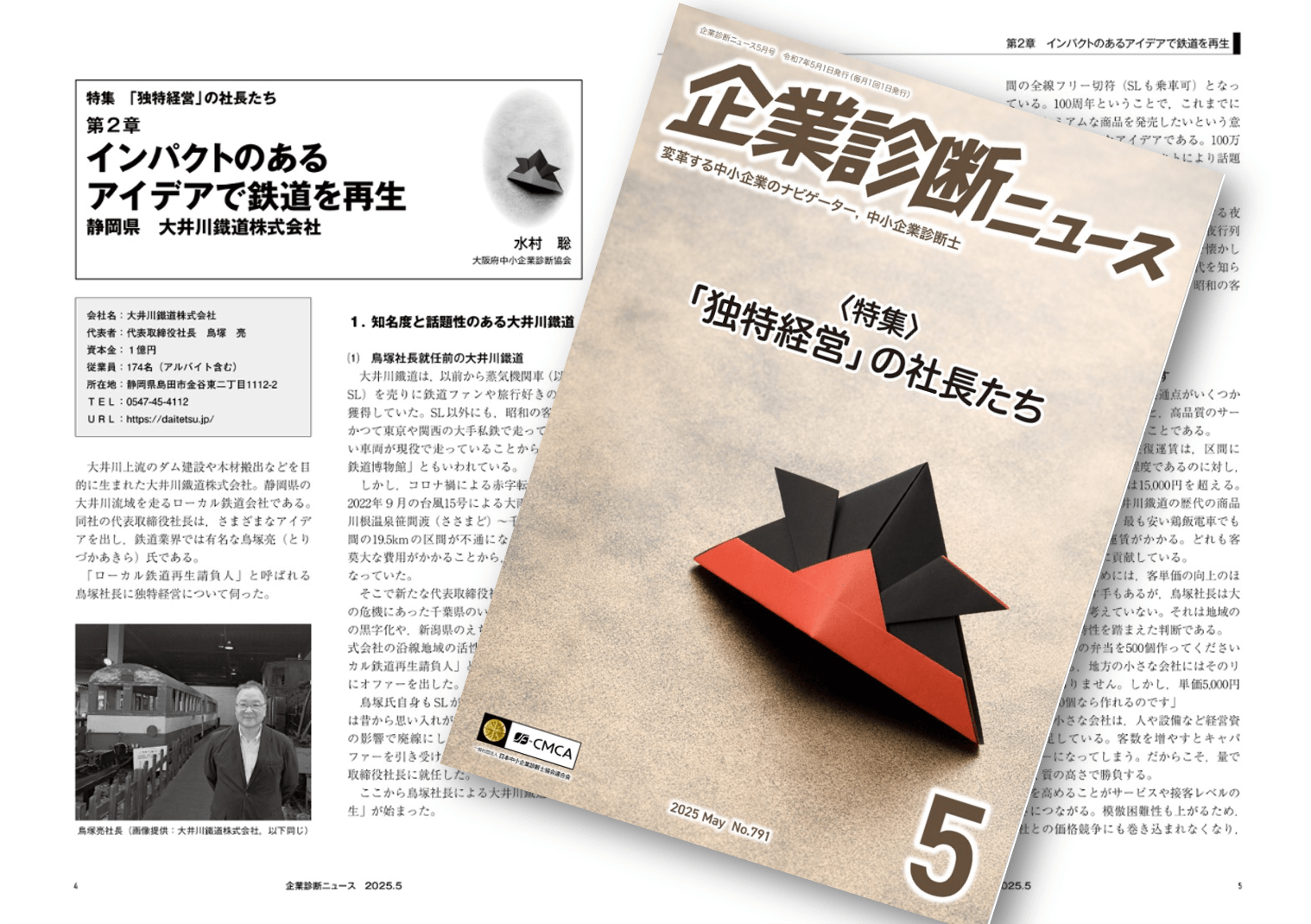 この度、企業診断ニュース 2025年5月号の特集「独特経営の社長インタビュー」において、第1章と第2章の執筆を担当いたしました。