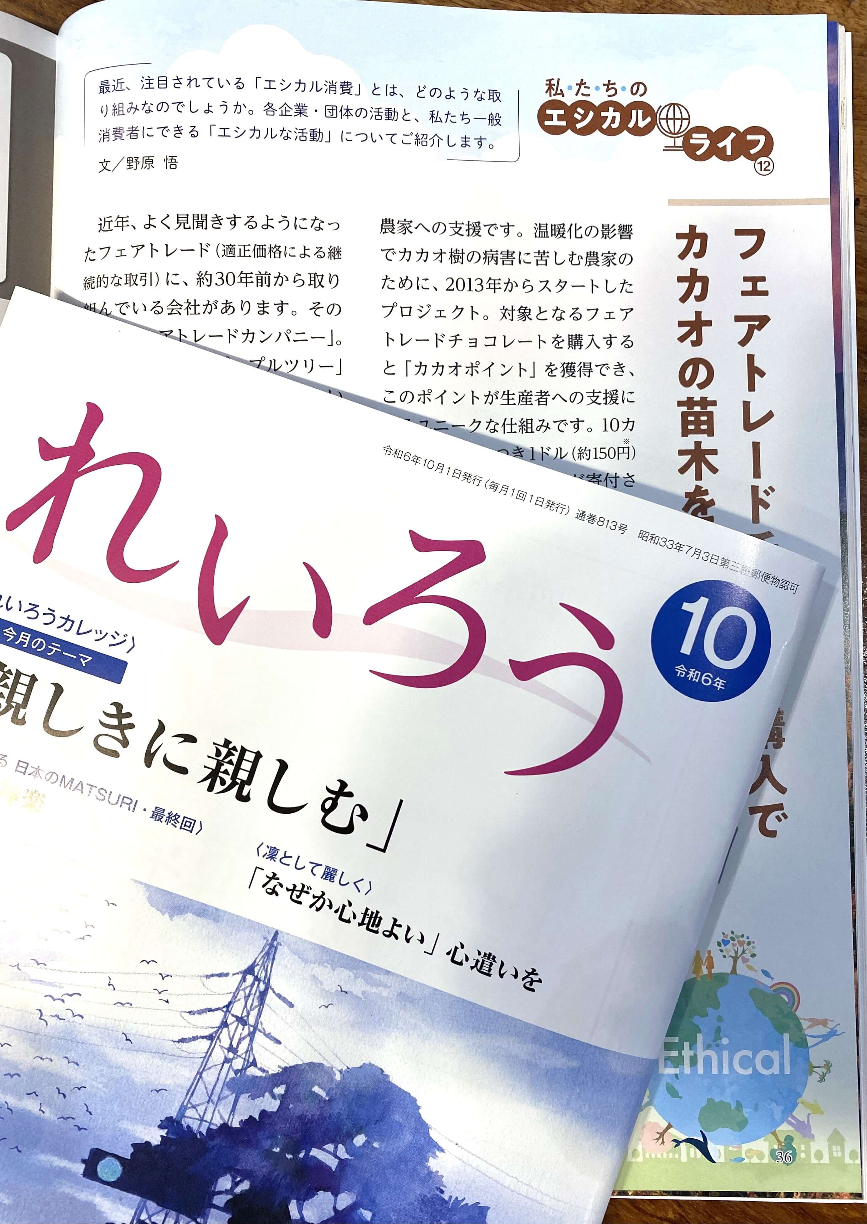 この度、モラロジー道徳教育財団発行の『れいろう』令和6年度10月号の連載企画「私たちのエシカルライフ」の執筆を担当させていただきました。
