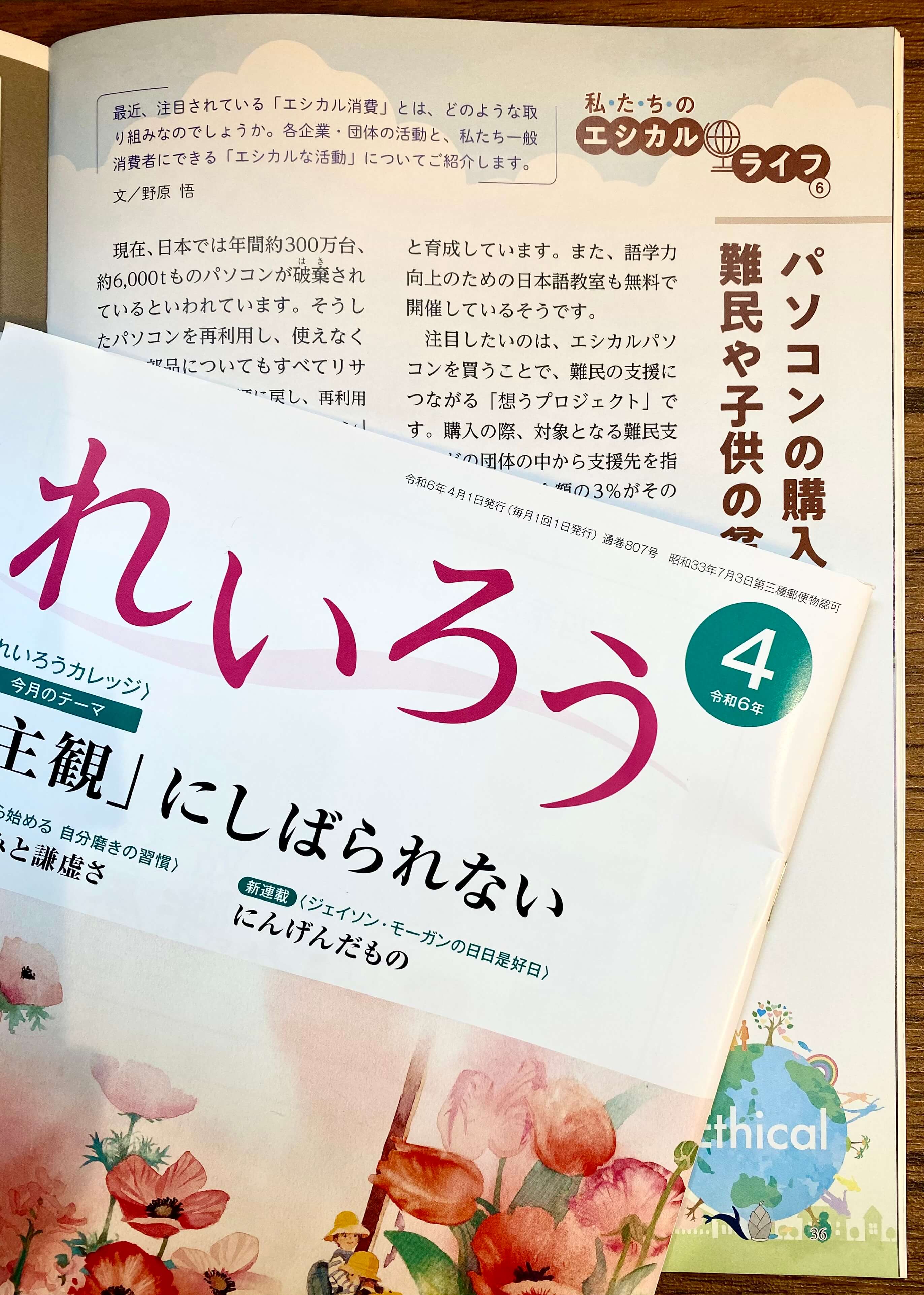 この度、モラロジー道徳教育財団発行の『れいろう』令和6年度4月号の連載企画「私たちのエシカルライフ」の執筆を担当させていただきました。