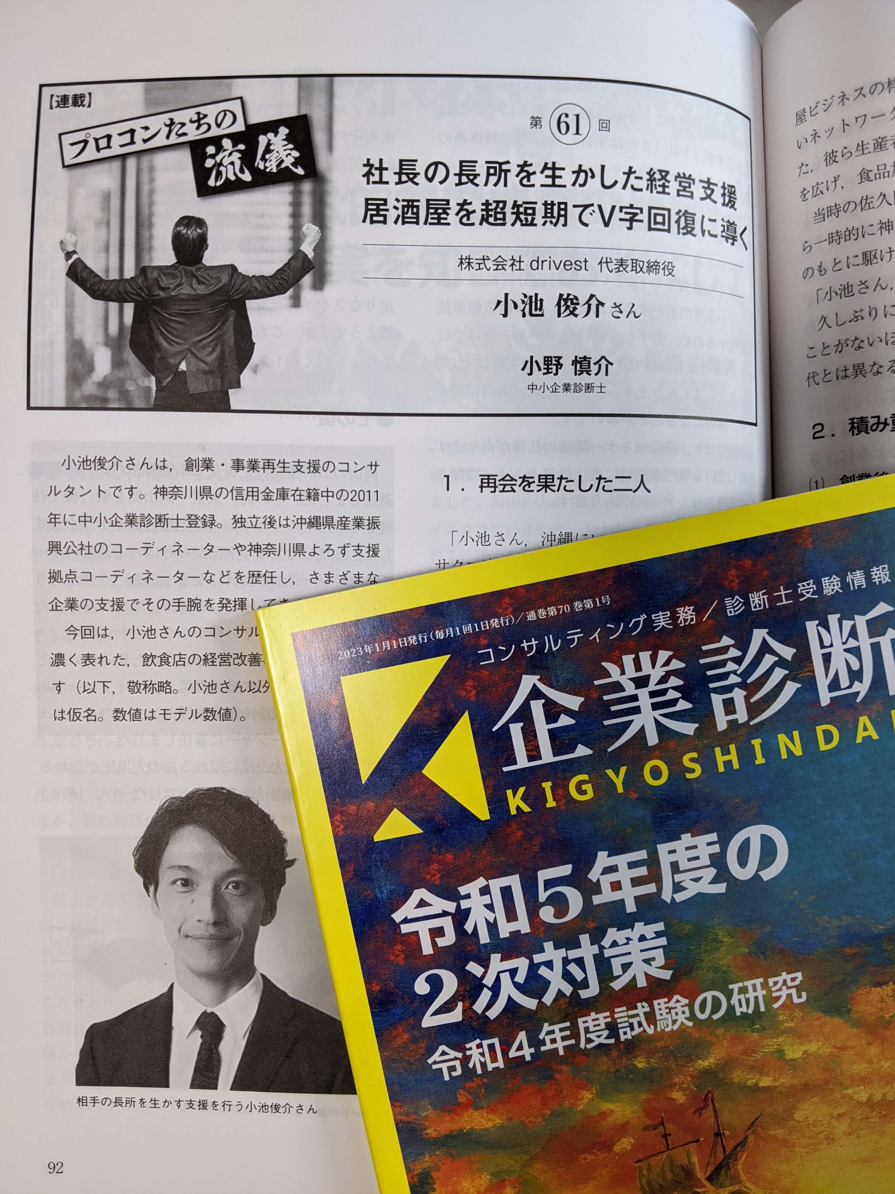 このたび、月刊『企業診断』2023年1月号にて、「プロコンたちの流儀」を執筆いたしました。