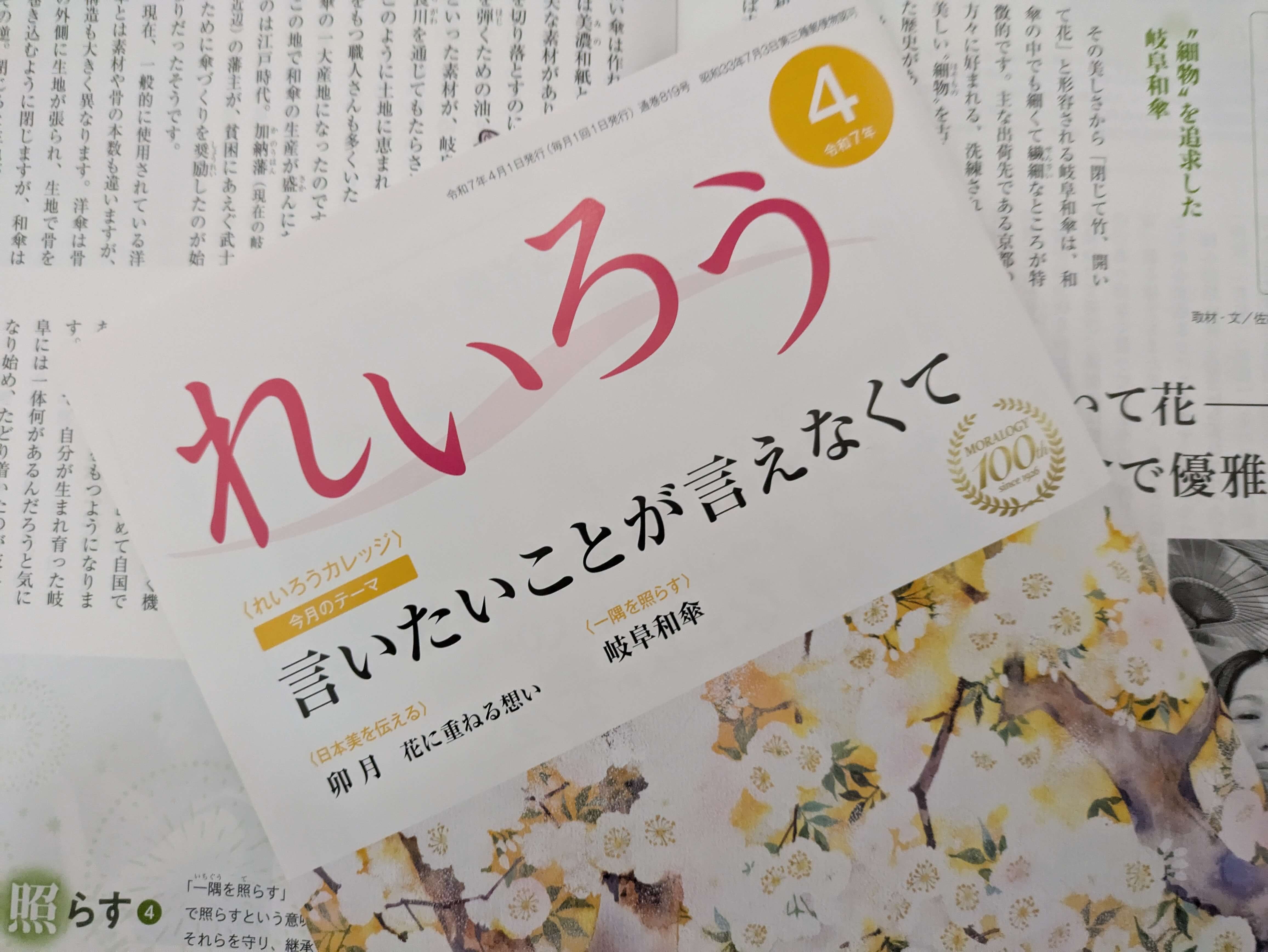 この度、公益財団法人モラロジー道徳教育財団発行の『れいろう』令和7年4月号に、連載企画である「一隅を照らす」の執筆を担当させていただきました。