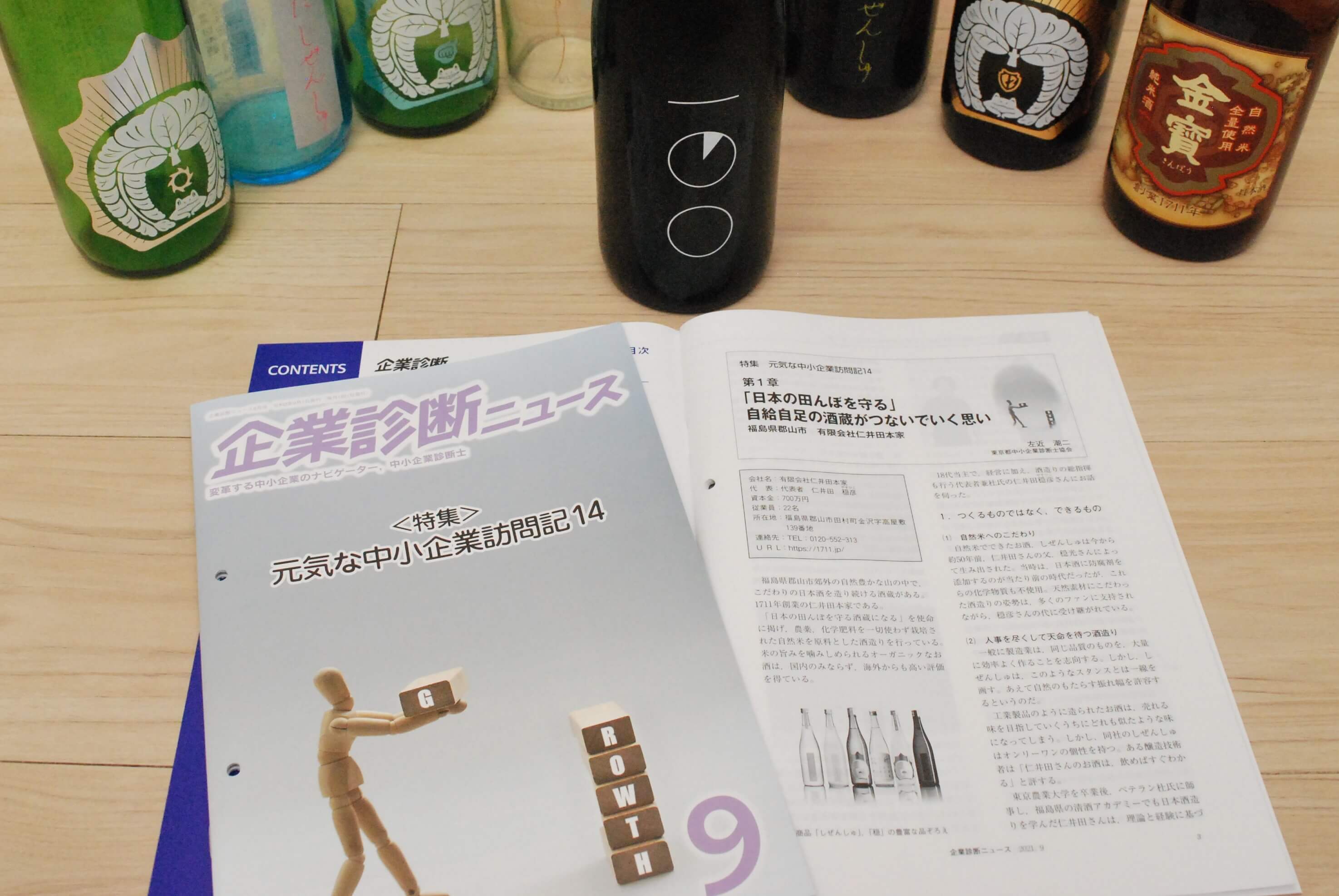 この度、『企業診断ニュース』9月号にて、特集「元気な中小企業訪問記14」の第1章で、農薬や化学肥料を使わない自然米での酒造りにこだわる、仁井田本家の取材・執筆を担当しました。