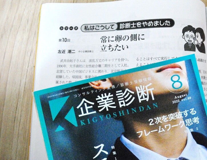 この度、月刊「企業診断」2022年8月号で、「わたしはこうして診断士をやめました~第10回「卵の側に立ちたい」を執筆しました。