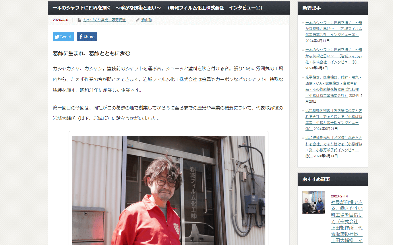 【記事】一本のシャフトに世界を描く ~確かな技術と思い~ (岩城フィルム化工株式会社 インタビュー①) | 「創×造」