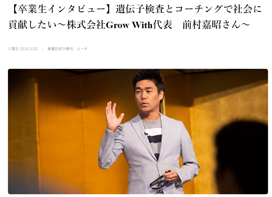 株式会社エクスウィルパートナーズ様の「先生ビジネス百科」に、志師塾卒業生である株式会社Grow Witth 代表取締役 前村嘉昭(まえむらよしあき)さんのインタビュー記事を執筆させていただきました。